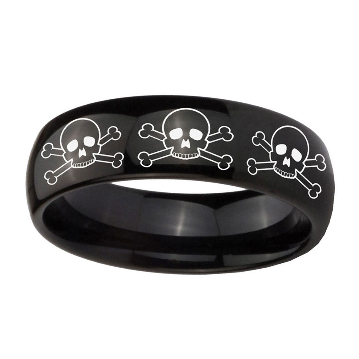 Propose with the 10mm Multiple Skull Dome Black Tungsten Carbide Men's Engagement Ring. This dome-shaped black tungsten ring with Multiple Skull design is ideal for engagements.
