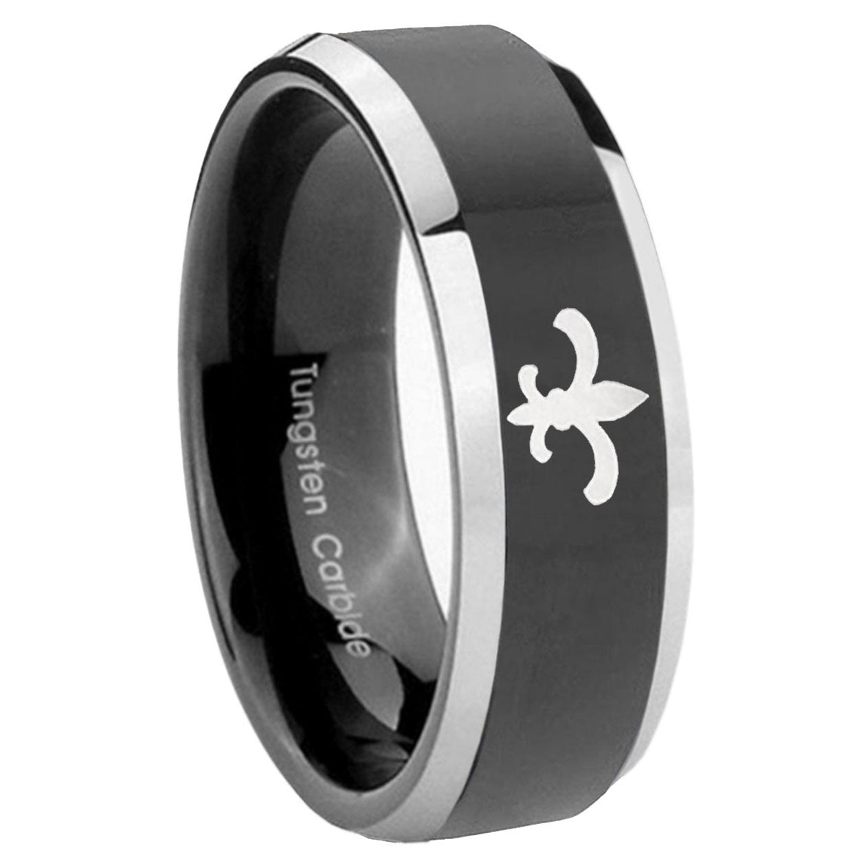 His Hers Fleur De Lis Beveled Glossy Black 2 Tone Tungsten Men's Band Ring Set