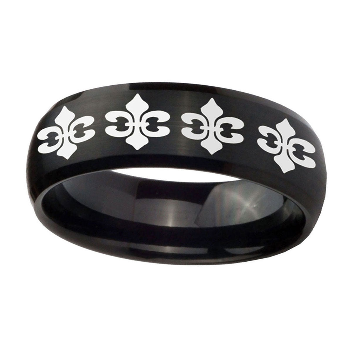 5, 8mm Multiple Fleur De Lis Dome Brush Black Tungsten Wedding Engraving Ring