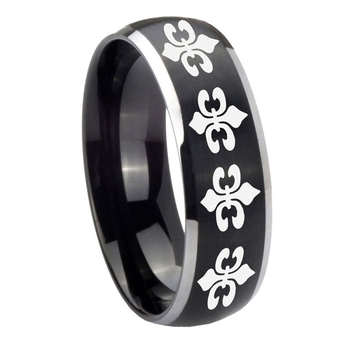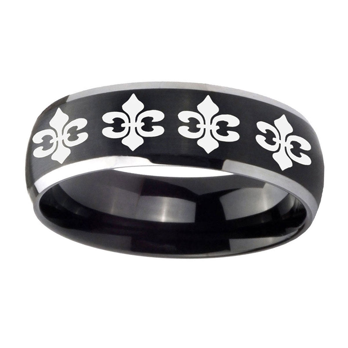 5, 8mm Multiple Fleur De Lis Dome Brushed Black 2 Tone Tungsten Custom Mens Ring