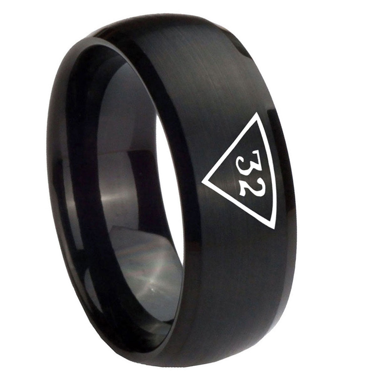 Celebrate with the 10mm Masonic 32 Triangle Freemason Dome Brush Black Tungsten Carbide Men's Wedding Band. This brushed black dome ring with Masonic design is perfect for weddings.