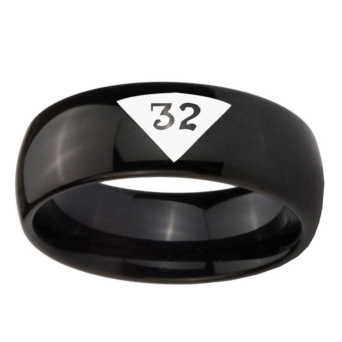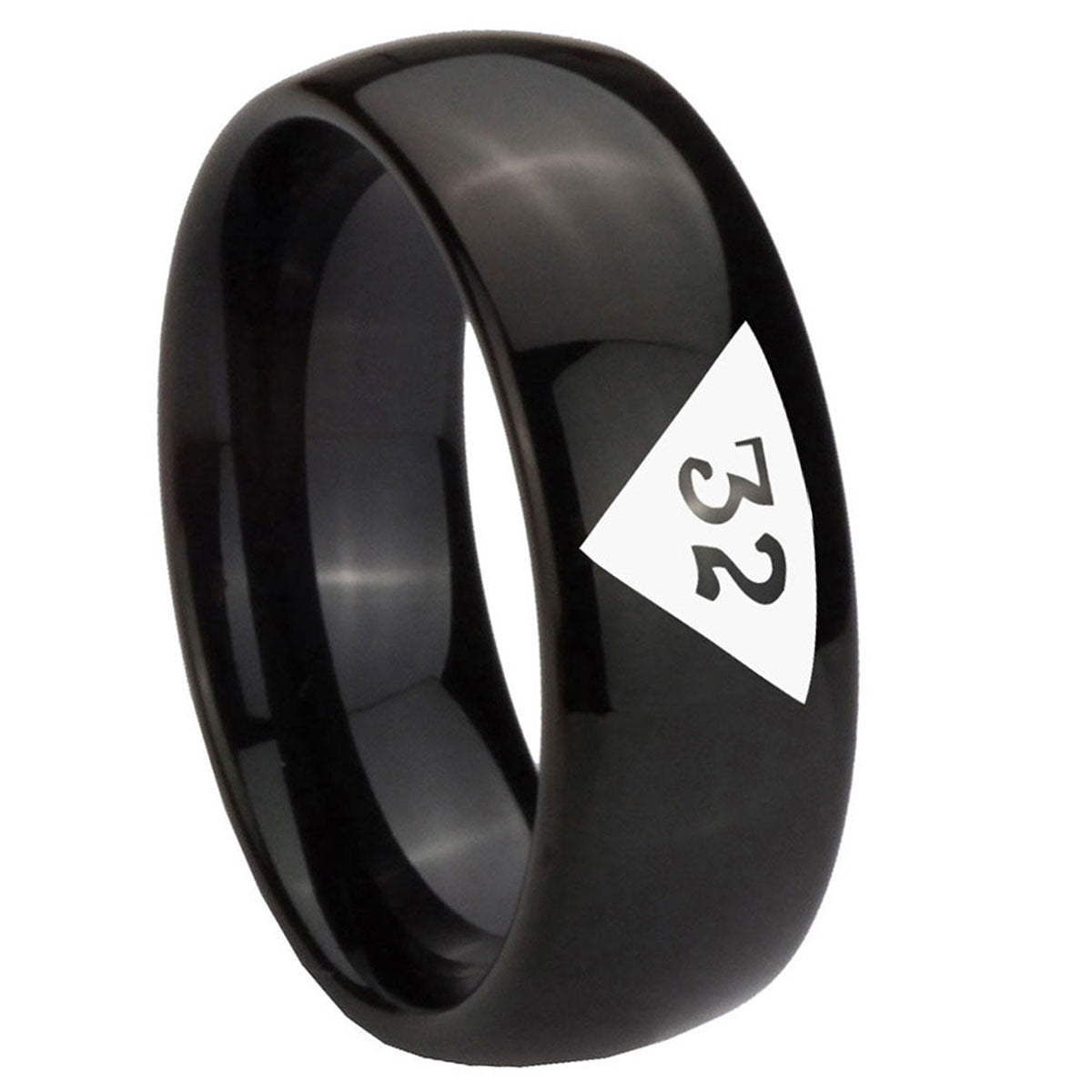 Propose with the 10mm Masonic 32 Triangle Design Freemason Dome Black Tungsten Carbide Mens Engagement Band. This dome-shaped black tungsten ring with Masonic 32 Triangle Design Freemason design is ideal for engagements.