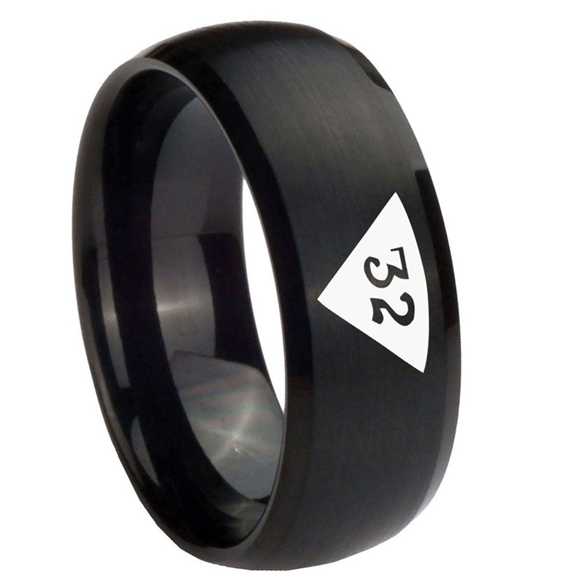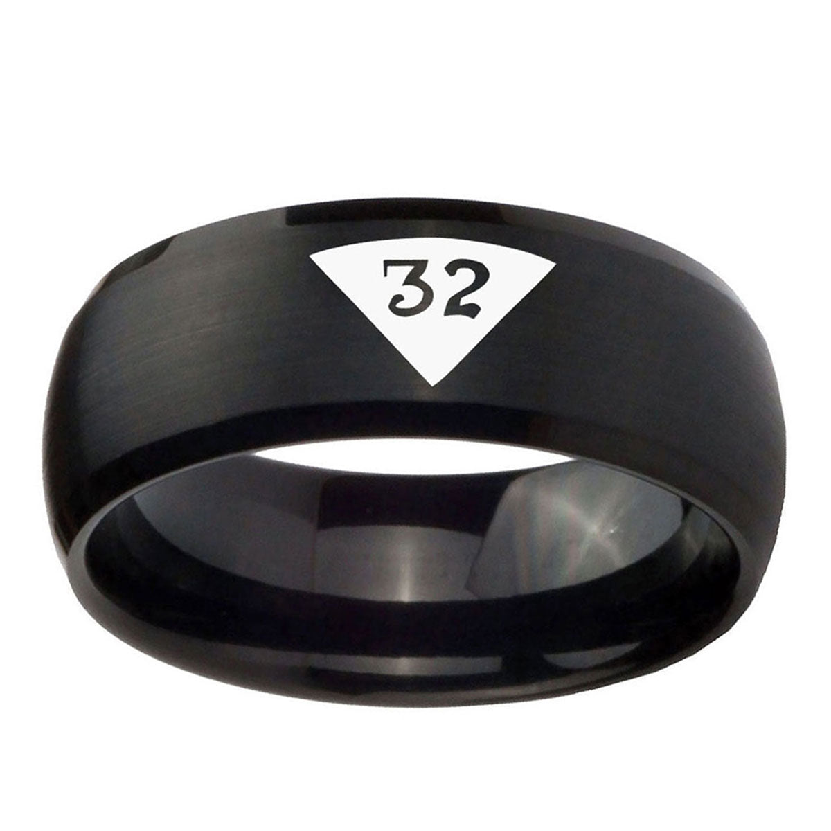 Celebrate with the 10mm Masonic 32 Triangle Design Freemason Dome Brush Black Tungsten Carbide Men's Wedding Band. This brushed black dome ring with Masonic 32 Triangle Design Freemason design is perfect for weddings.