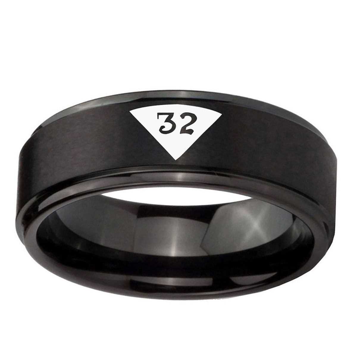 10mm Masonic 32 Triangle Design Freemason Step Edges Brush Black Tungsten Carbide Mens Engagement Band