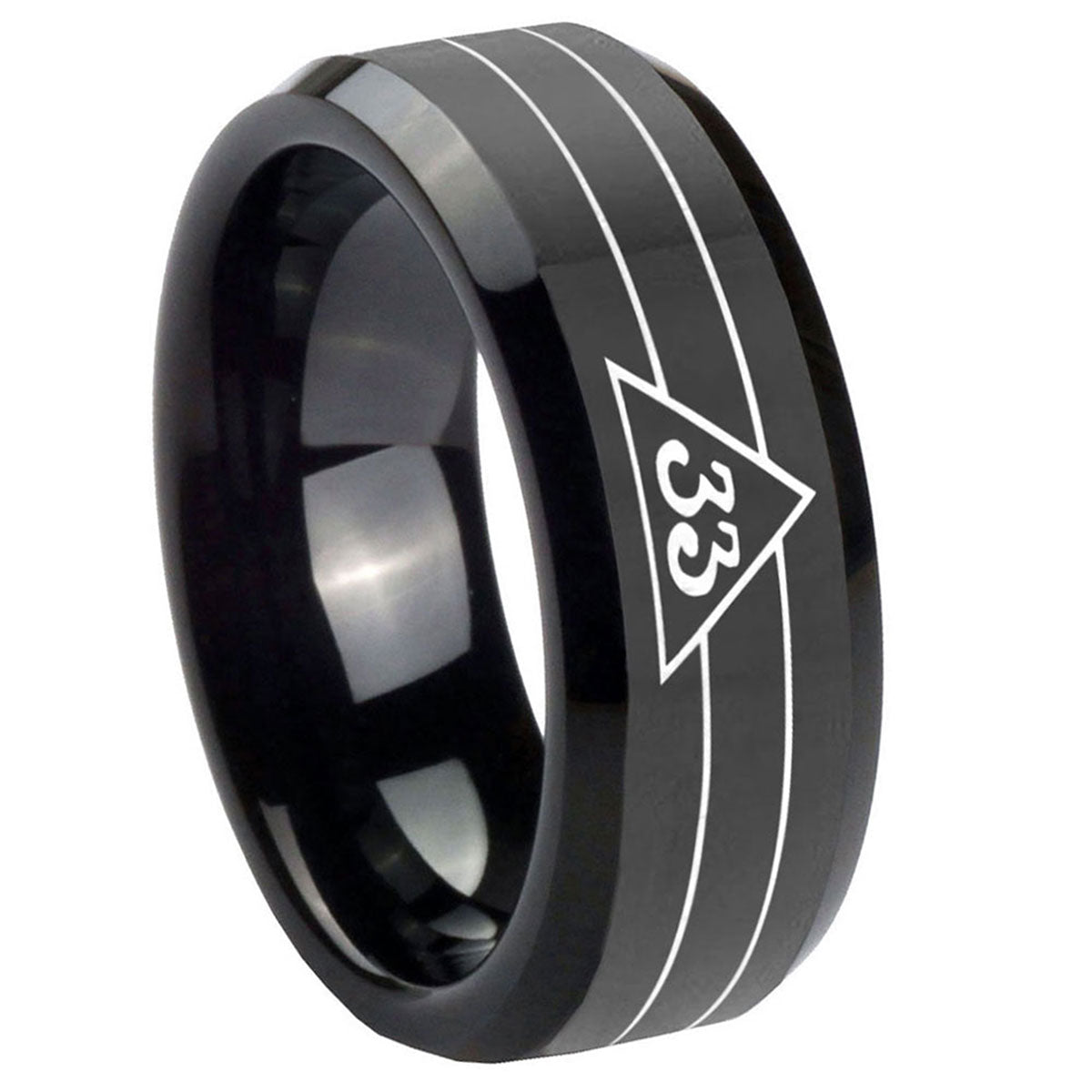 10mm Masonic 32 Duo Line Freemason Beveled Edges Black Tungsten Carbide Wedding Engraving Ring