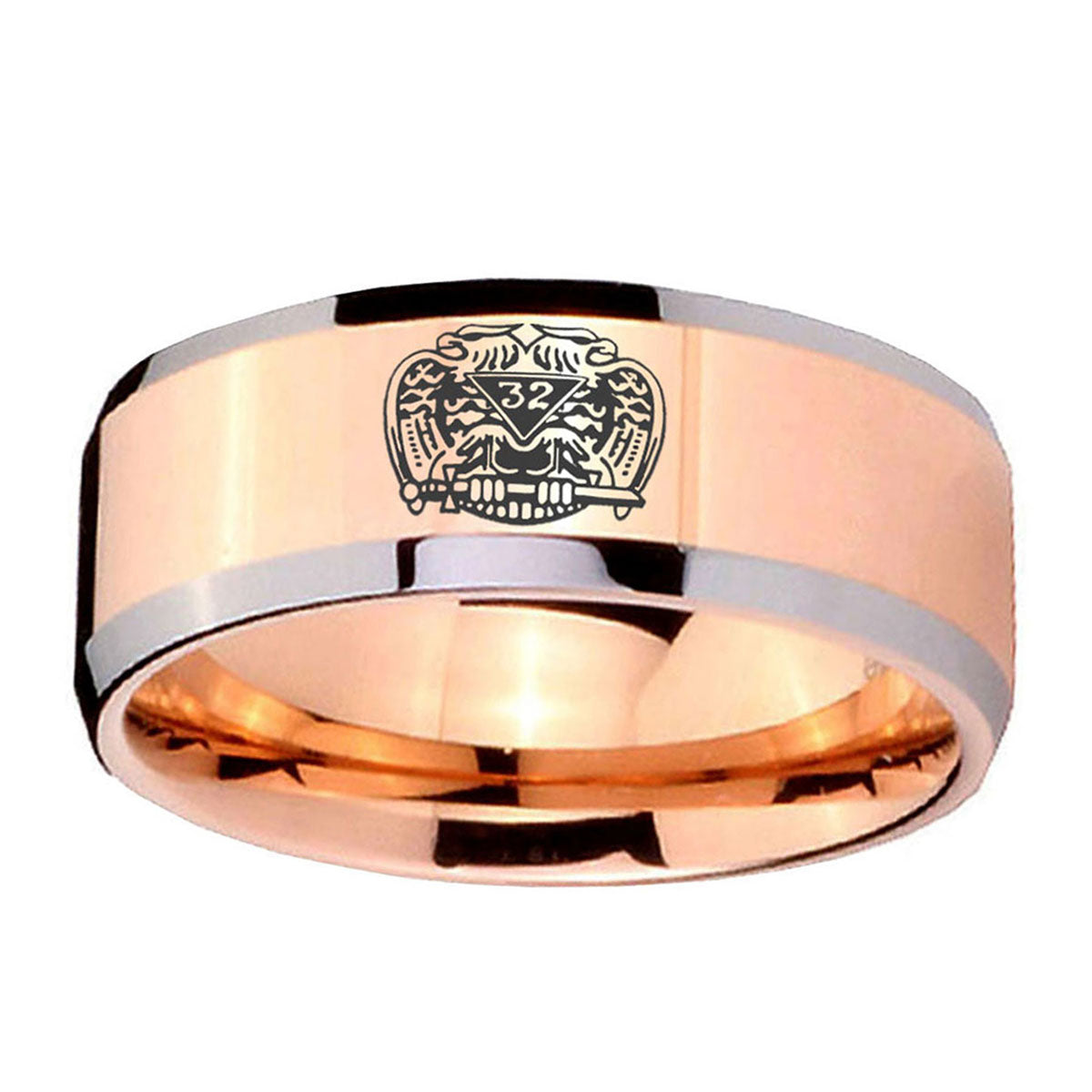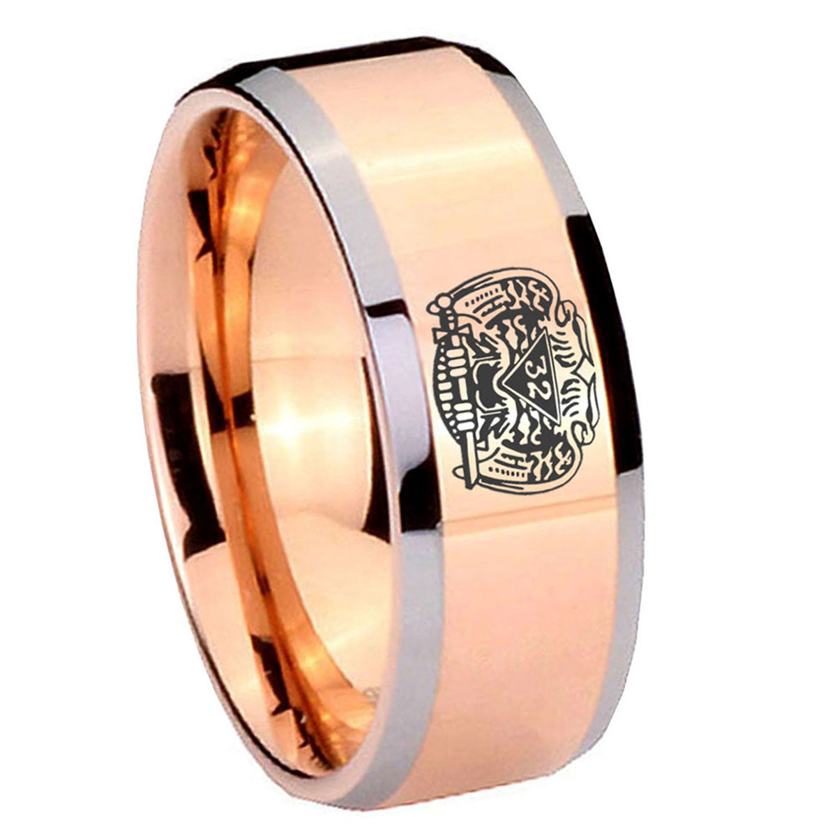 10mm Masonic 32 Degree Freemason Beveled Edges Rose Gold Tungsten Carbide Personalized Ring