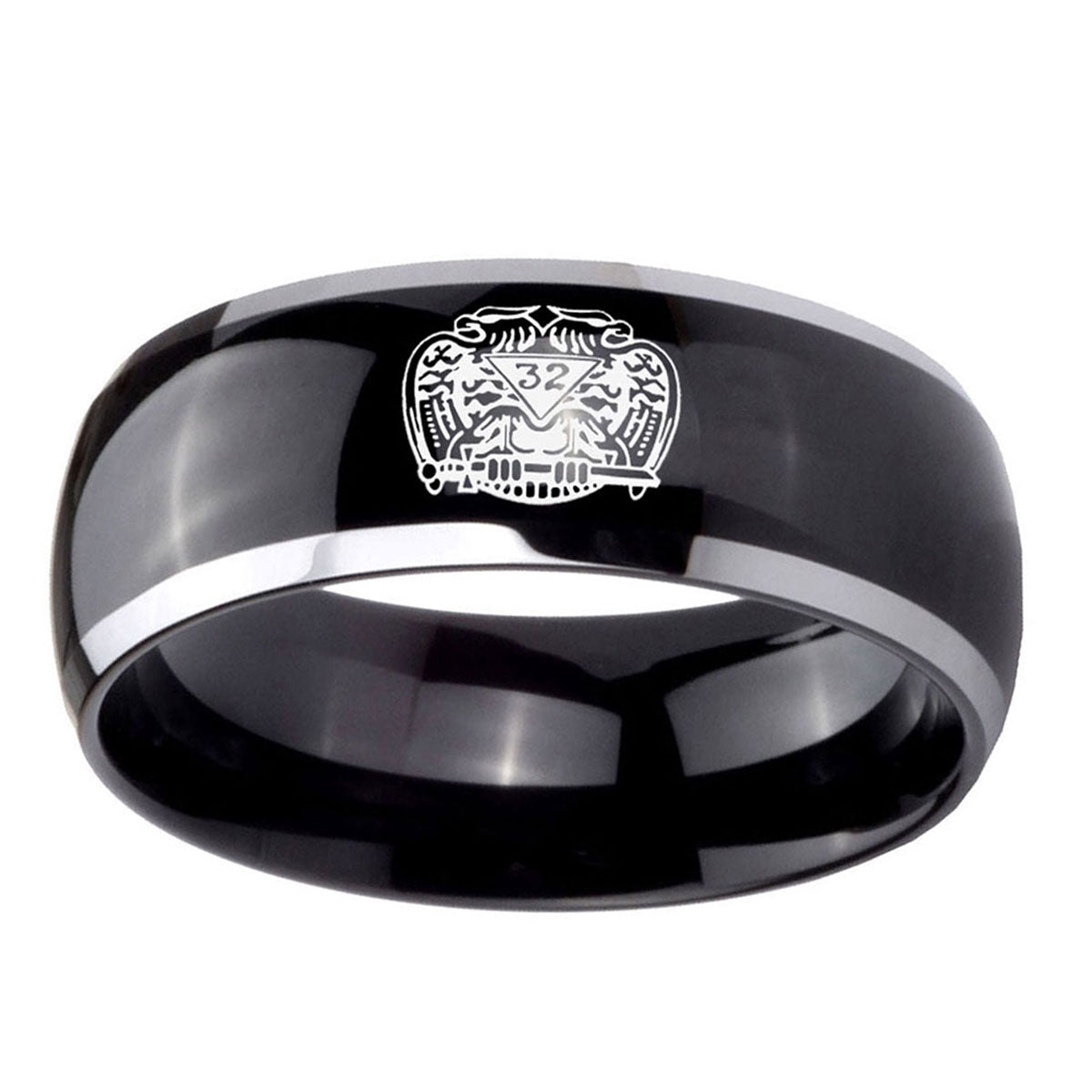 10mm Masonic 32 Degree Freemason Dome Glossy Black 2 Tone Tungsten Carbide Men's Promise Rings