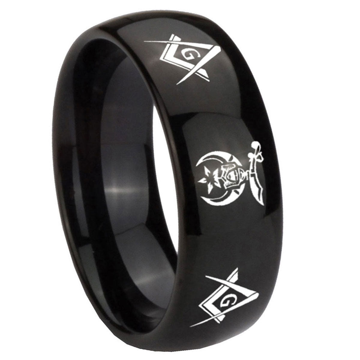 10mm Masonic Shriners Dome Black Tungsten Carbide Mens Ring Personalized