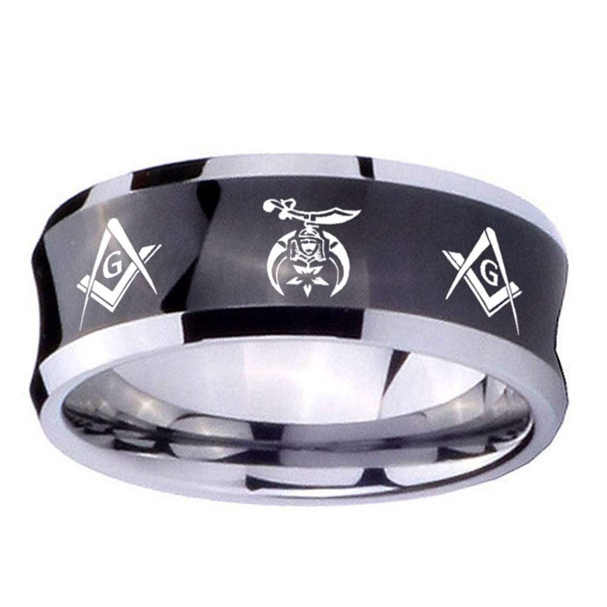 10mm Masonic Shriners Concave Black Tungsten Carbide Mens Engagement Ring