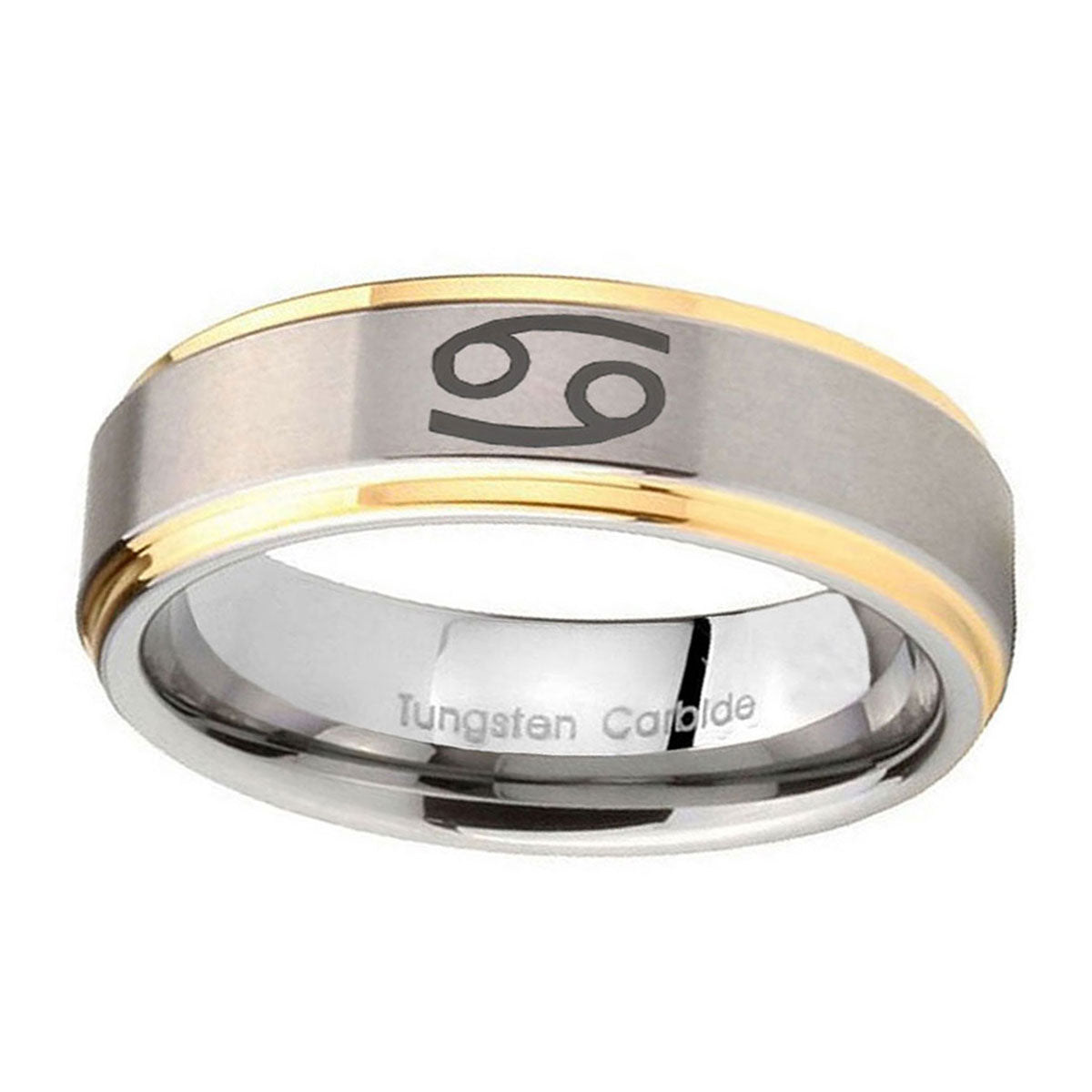 10mm Cancer Horoscope Step Edges Gold 2 Tone Tungsten Mens Engagement Band