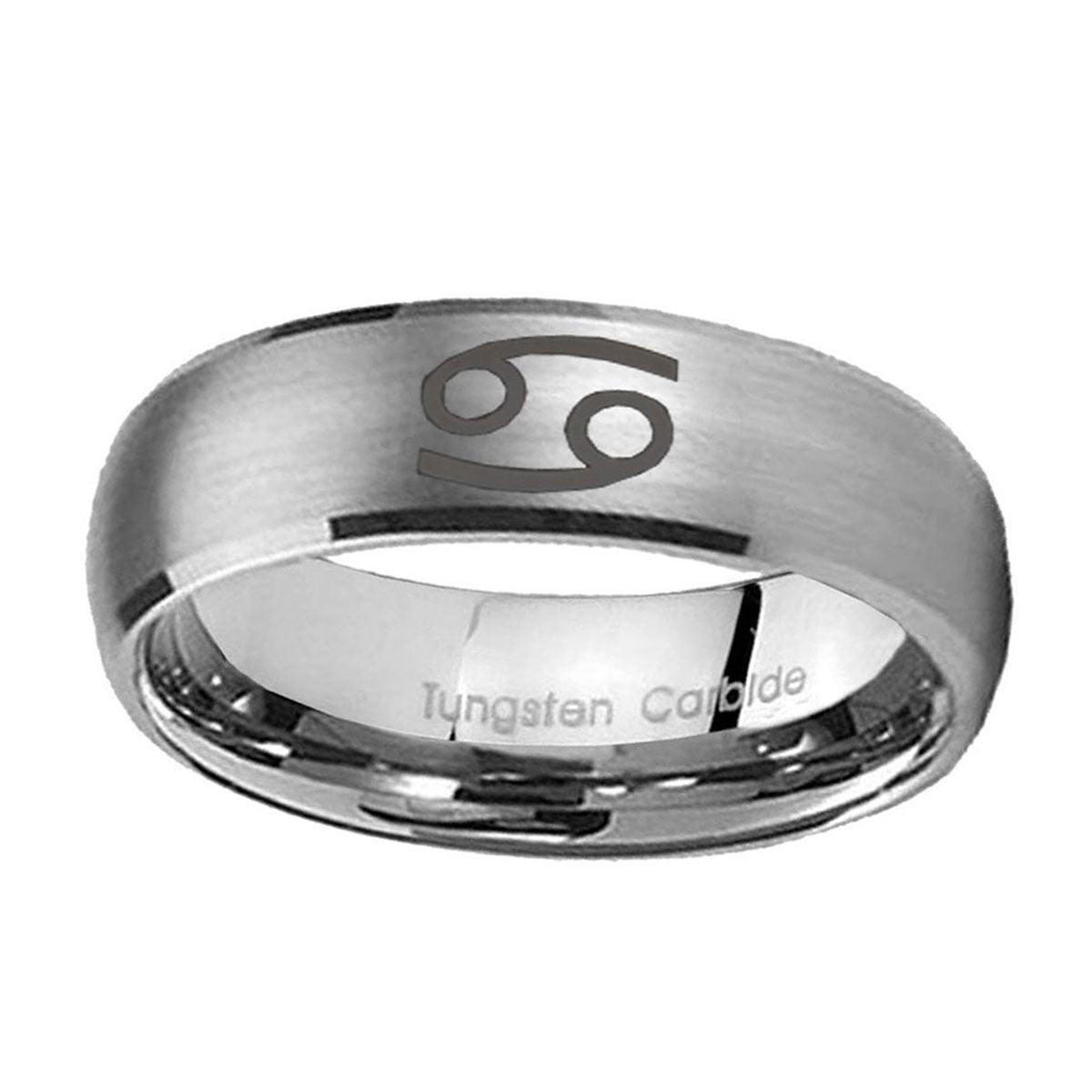 10mm Cancer Horoscope Dome Brushed Tungsten Carbide Wedding Engagement Ring