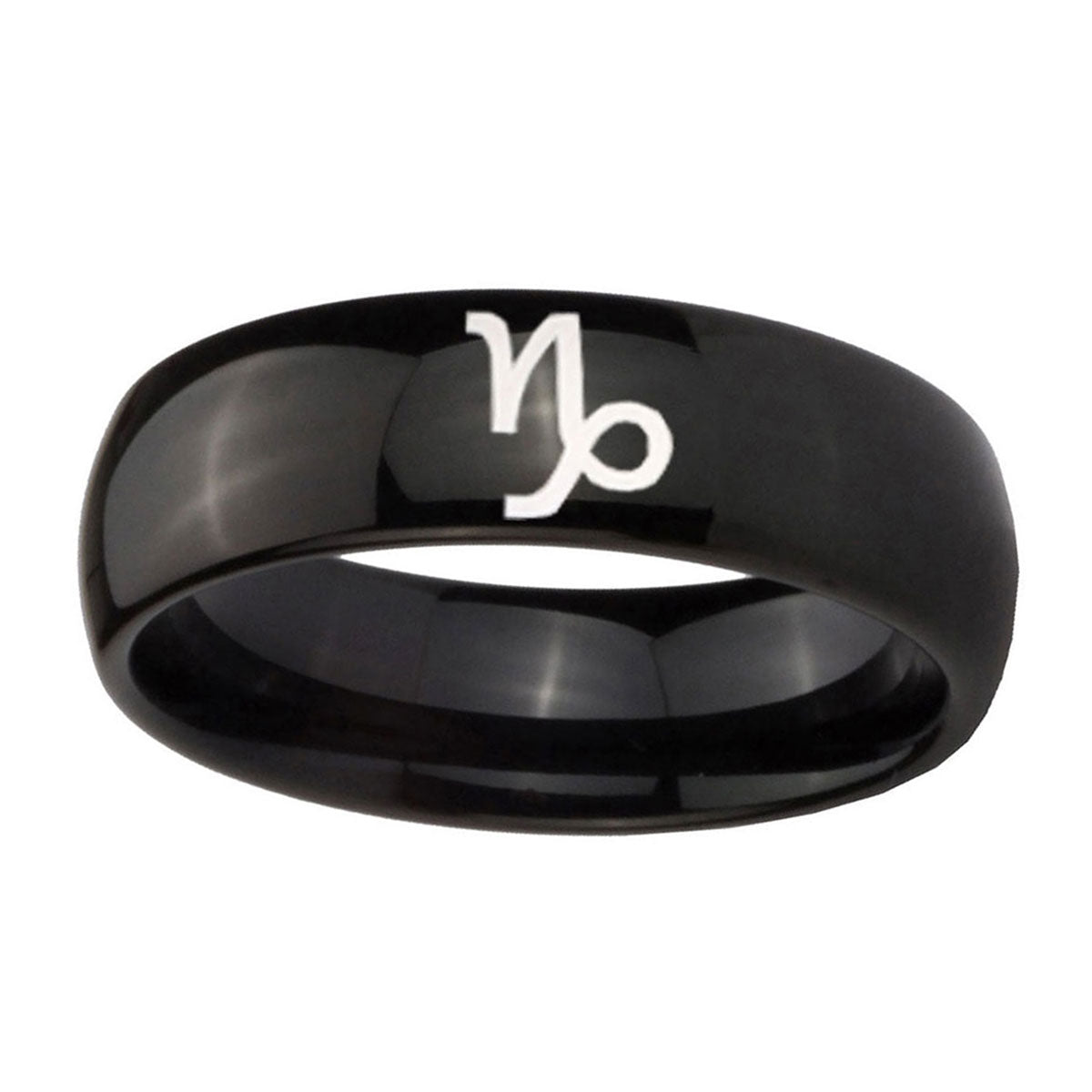 10mm Capricorn Zodiac Dome Black Tungsten Carbide Custom Mens Ring