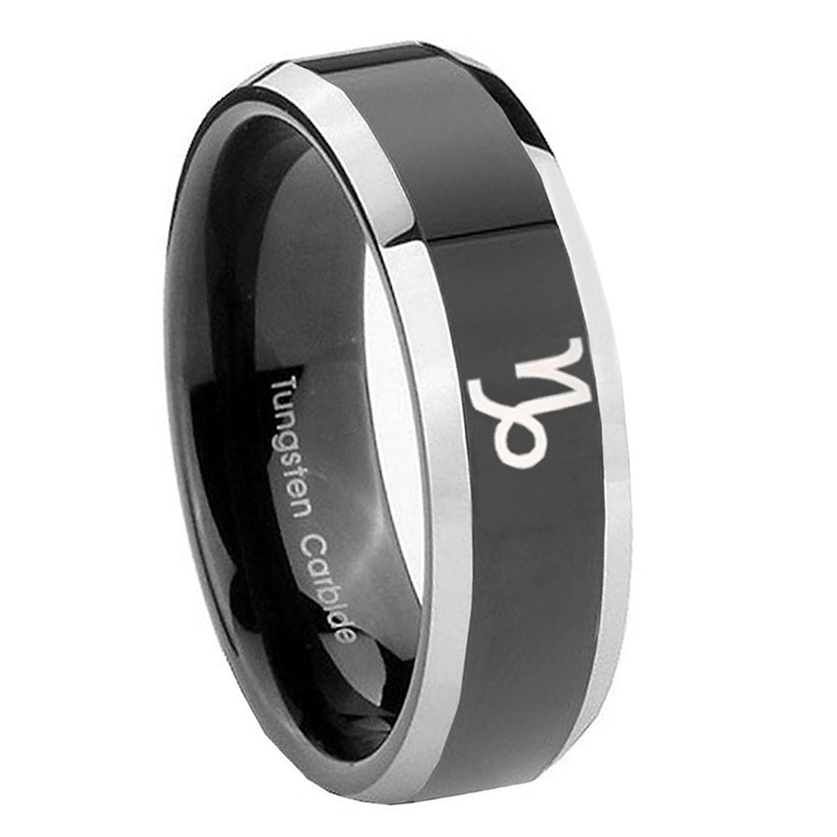 10mm Capricorn Zodiac Beveled Glossy Black 2 Tone Tungsten Mens Promise Ring