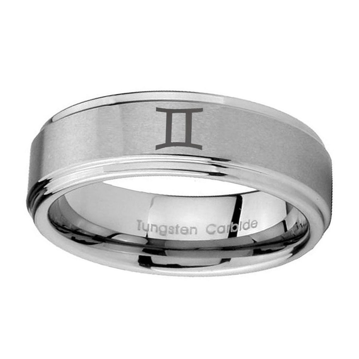 10mm Gemini Zodiac Step Edges Brushed Tungsten Carbide Custom Mens Ring