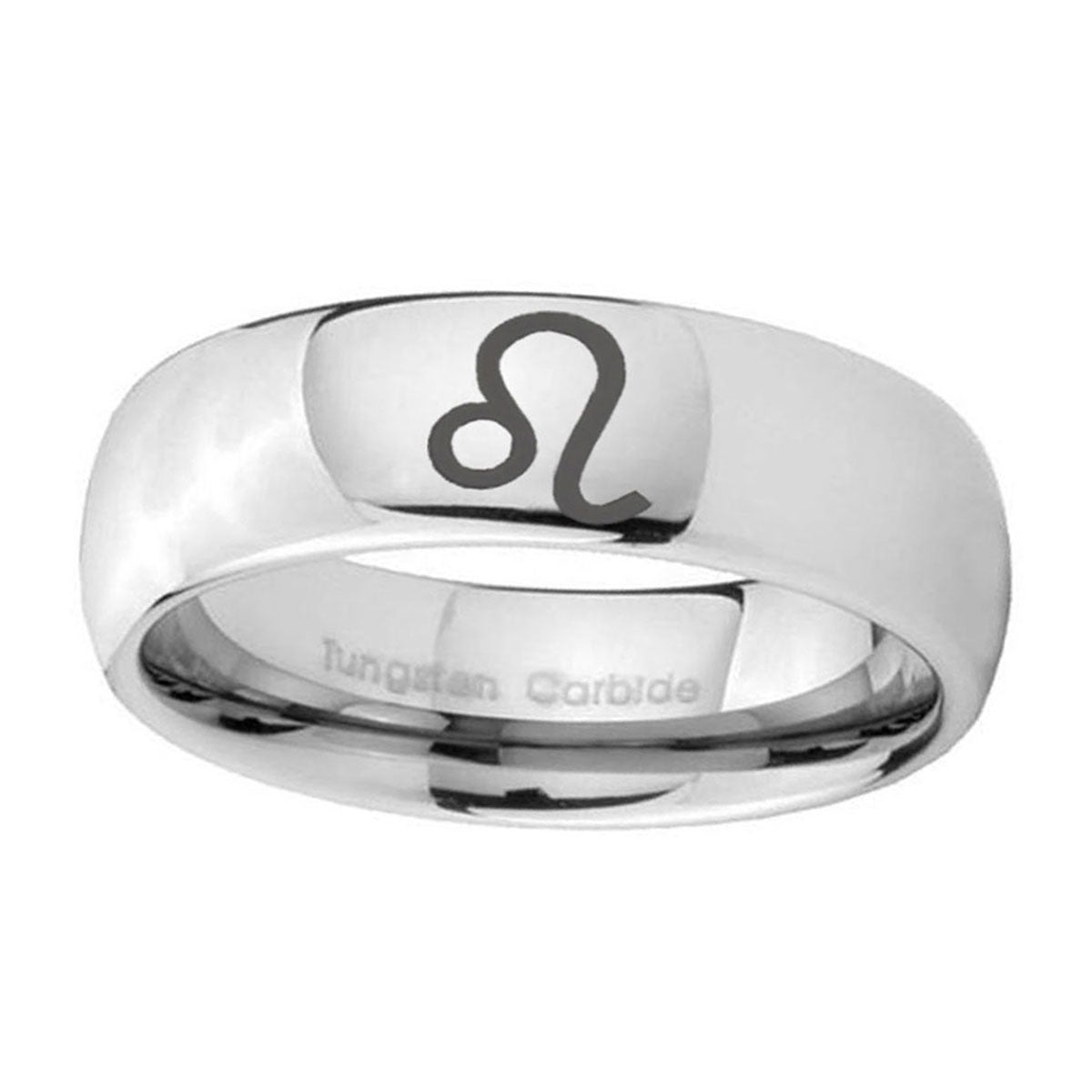 10mm Leo Zodiac Mirror Dome Tungsten Carbide Mens Promise Ring