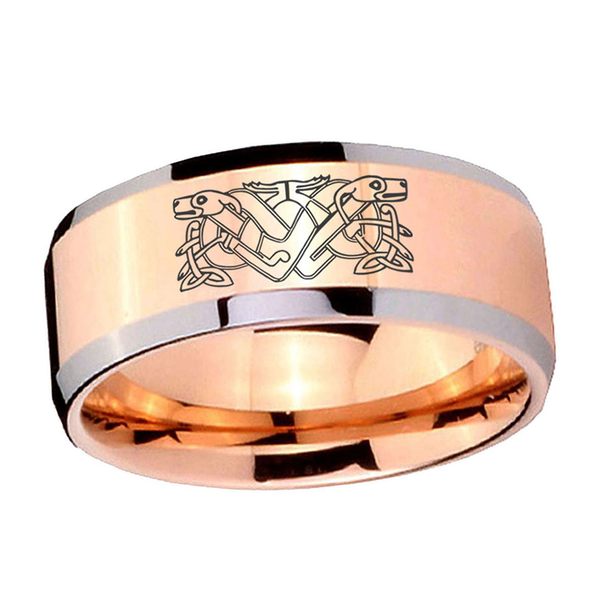 10mm Celtic Dog Beveled Edges Rose Gold Tungsten Wedding Bands Ring