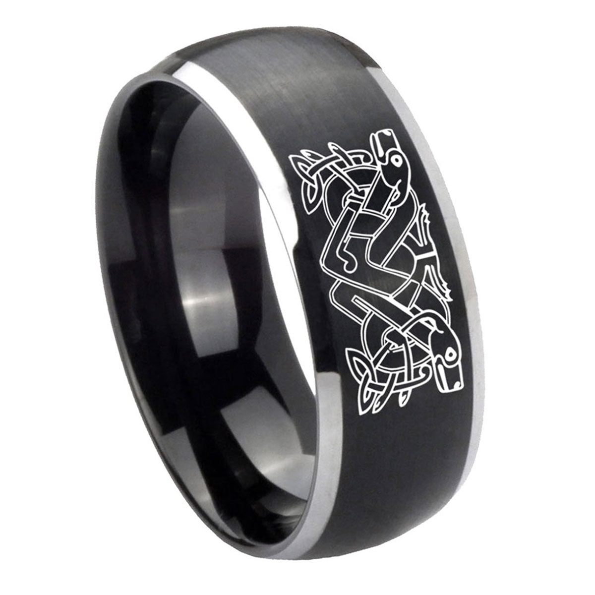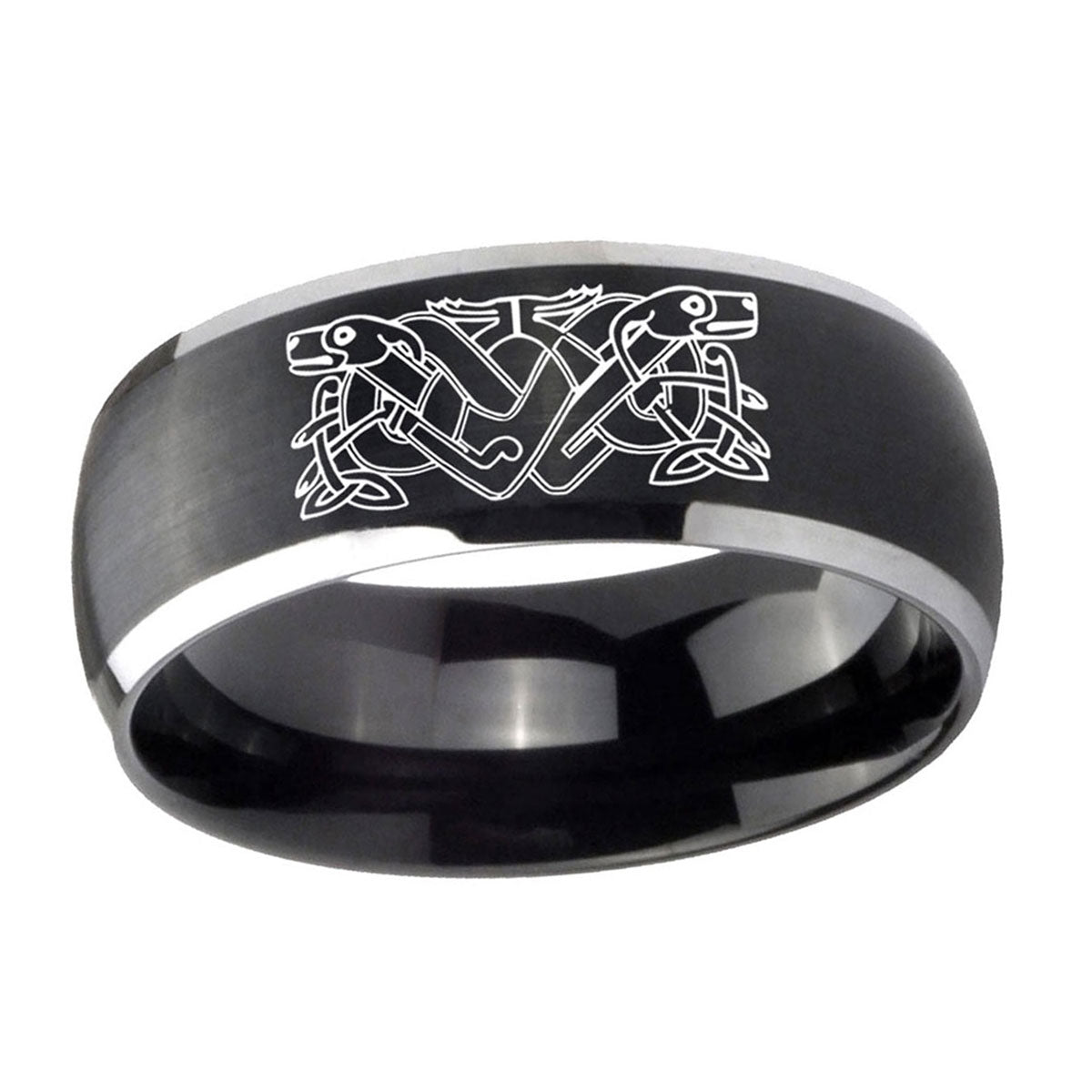 5, 8mm Celtic Dog Dome Brushed Black 2 Tone Tungsten Personalized Ring