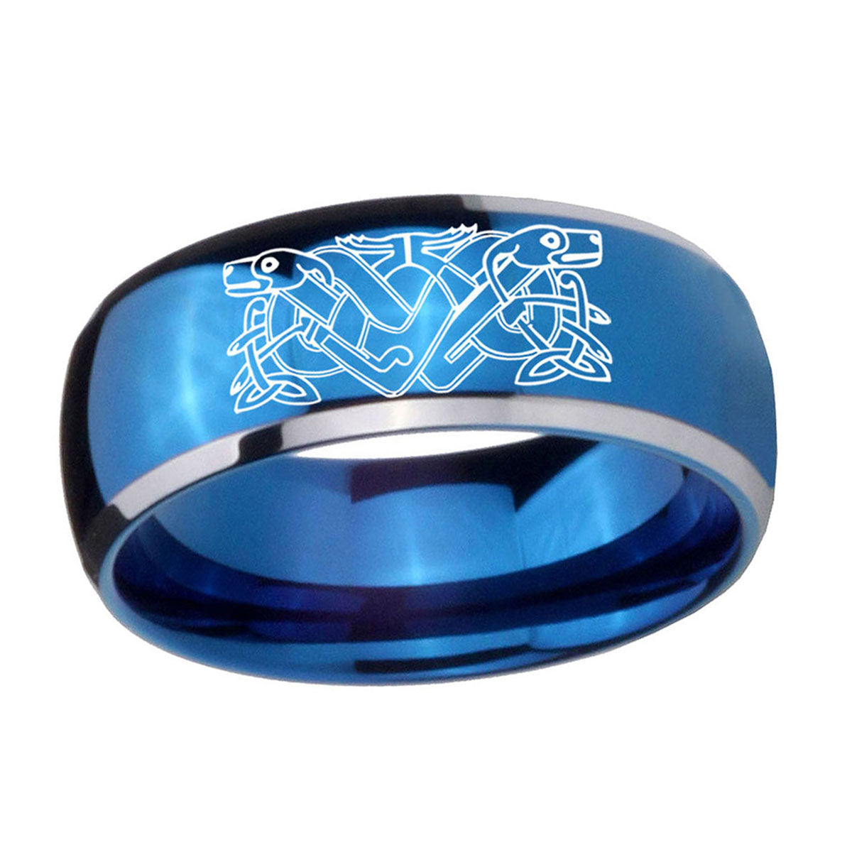 5, 8mm Celtic Dog Dome Blue 2 Tone Tungsten Carbide Promise Ring
