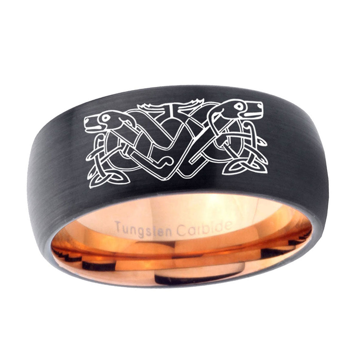 10mm Celtic Dog Dome Tungsten Rose Gold Custom Ring for Men