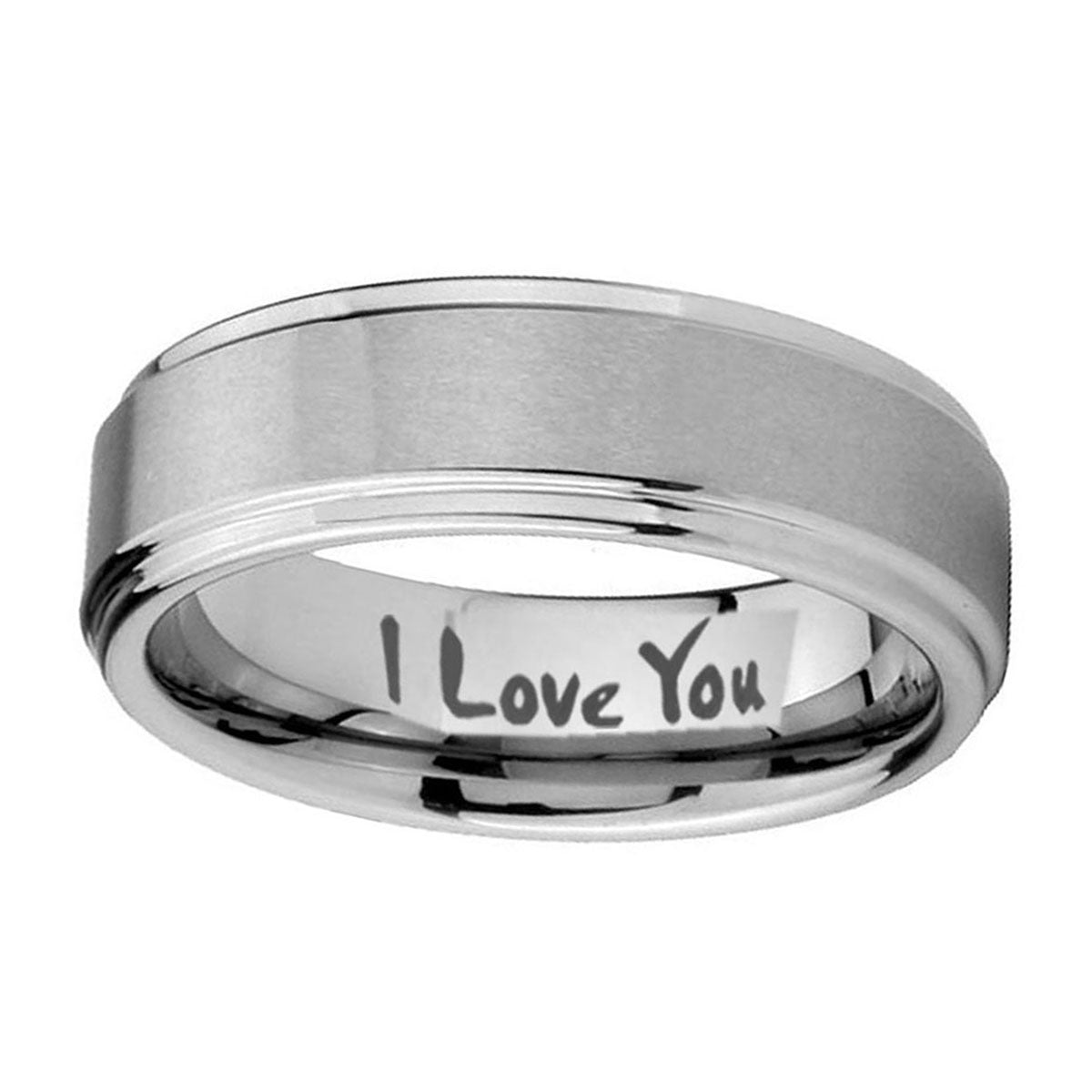 10mm I Love You Step Edges Brushed Tungsten Carbide Custom Ring for Men