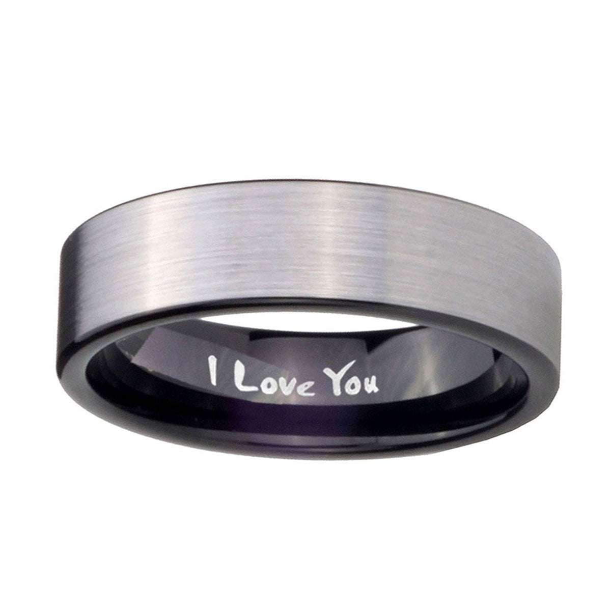 6, 8mm I Love You Pipe Cut Brushed Silver Tungsten Carbide Wedding Engagement Ring