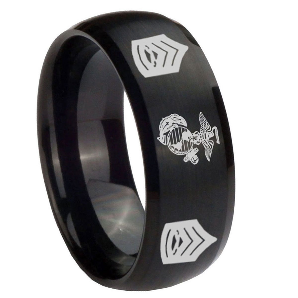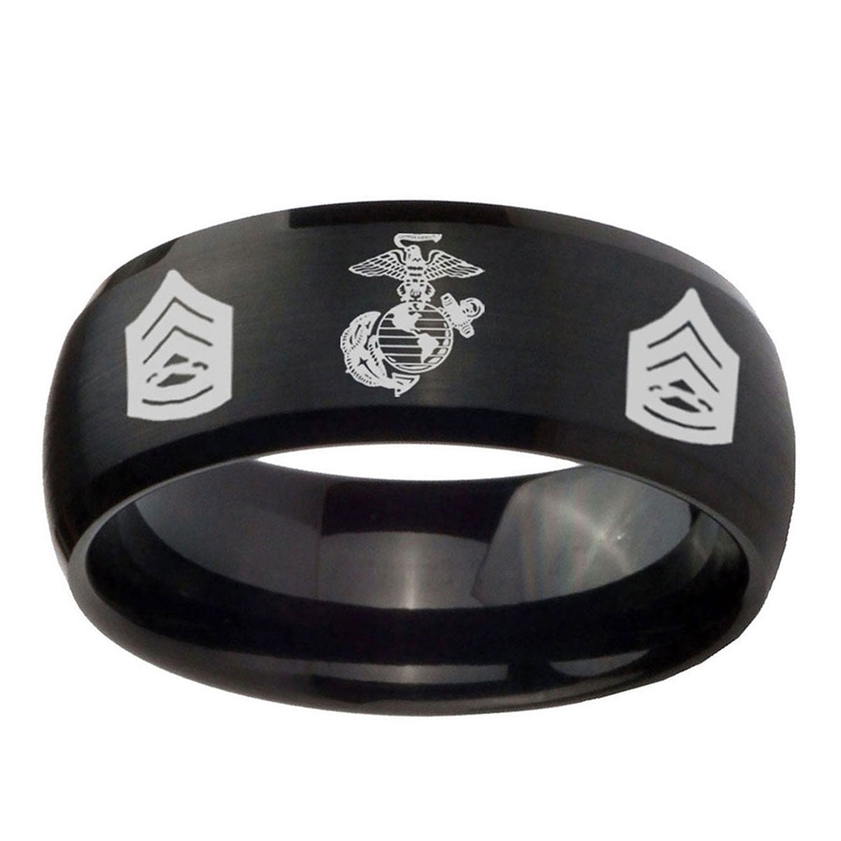 Style the 10mm Marine Army Sergeant Dome Brush Black Tungsten Carbide Mens Bands Ring. This brushed black dome ring with Marine Army Sergeant design is perfect for men.