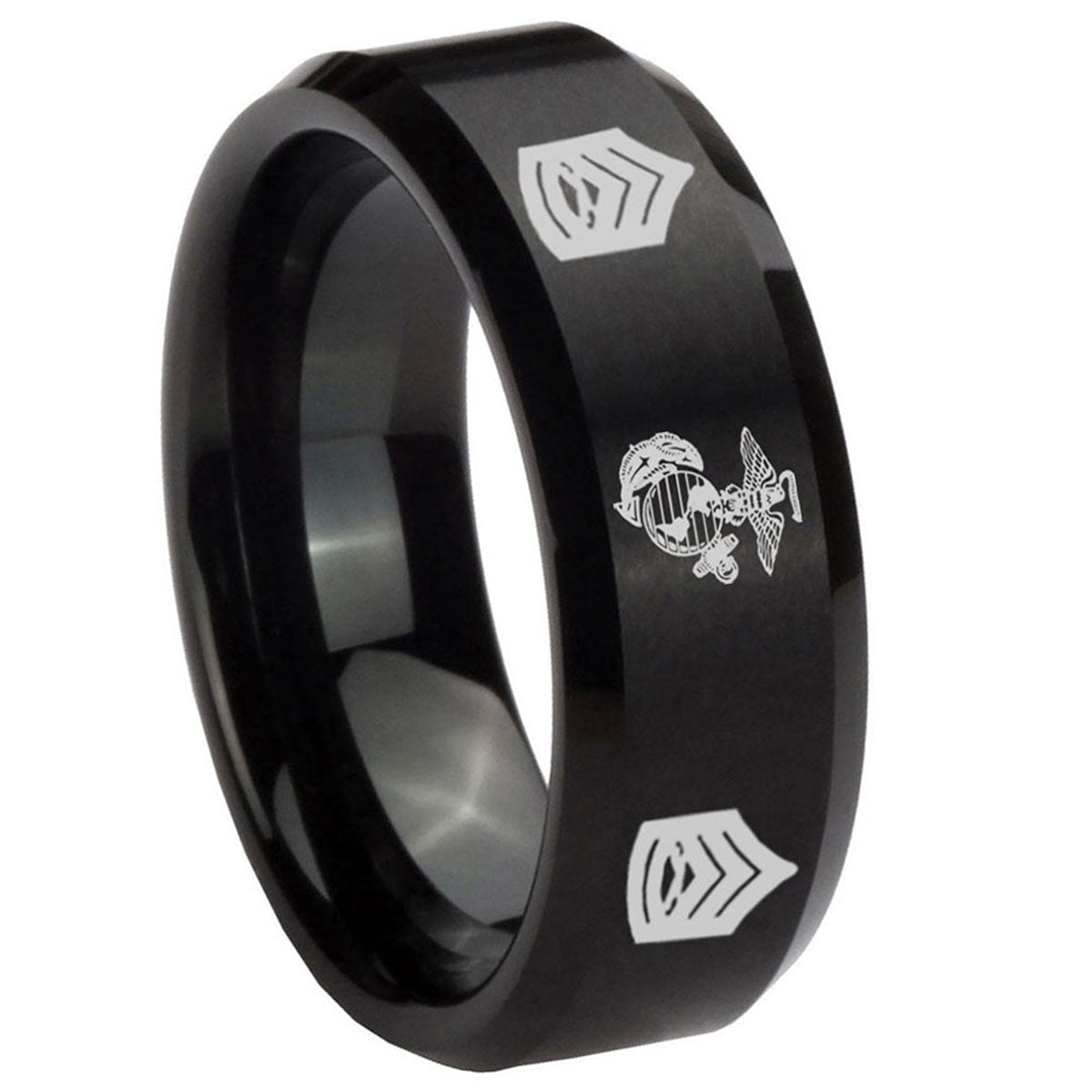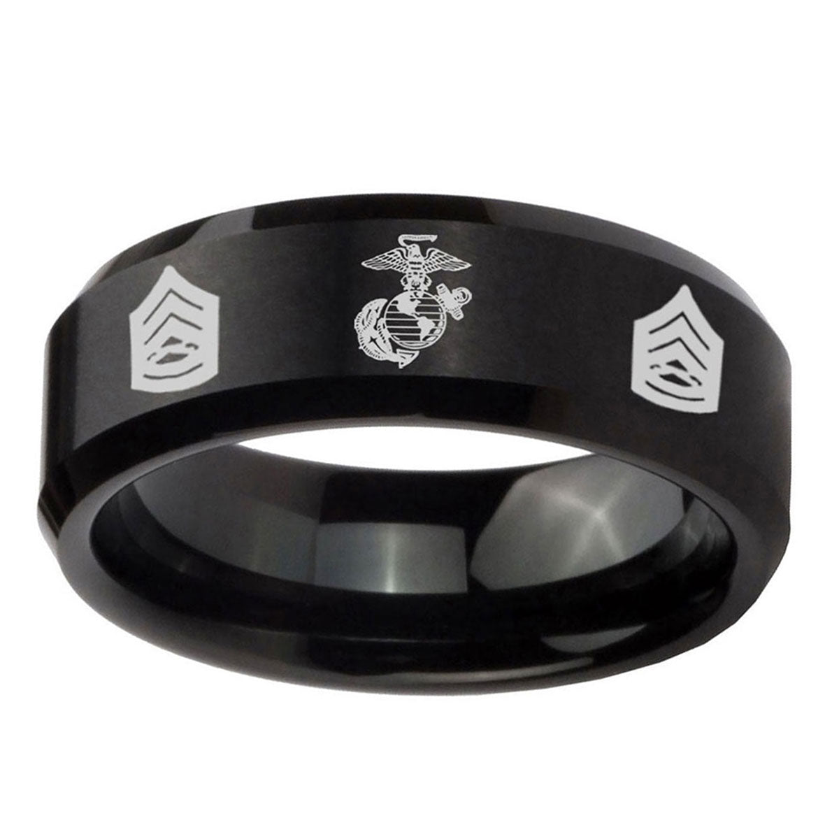 Make a promise with the 10mm Marine Army Sergeant Beveled Edges Brush Black Tungsten Carbide Mens Promise Ring. This brushed black tungsten ring with Marine Army Sergeant design is ideal for commitments.