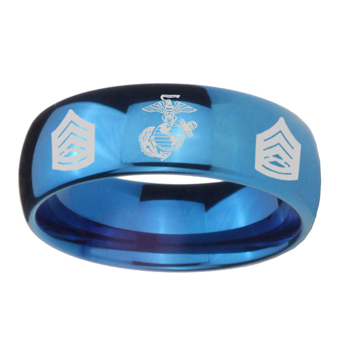 5, 8mm Marine Army Sergeant Dome Blue Tungsten Carbide Mens Ring Engraved