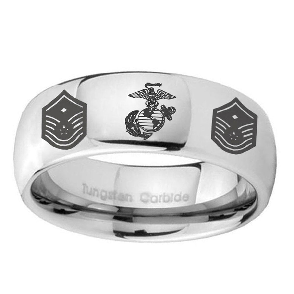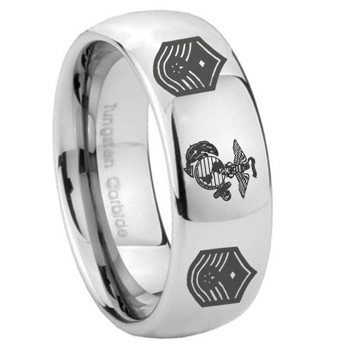 Introuding 5, 8mm Marine Chief Master Sergeant Mirror Dome Tungsten Carbide Mens Anniversary Ring . Offer in both 5mm and 8mm band width polished silver fnished from size 4 to 14