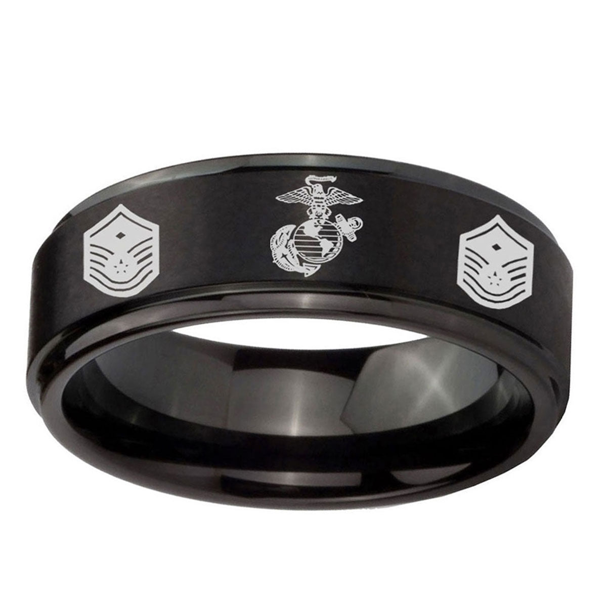 Introuding 5, 8mm Marine Chief Master Sergeant Step Edges Brush Black Tungsten Men's Bands Ring . Offer in both 5mm and 8mm band width brush black plated fnished from size 4 to 14