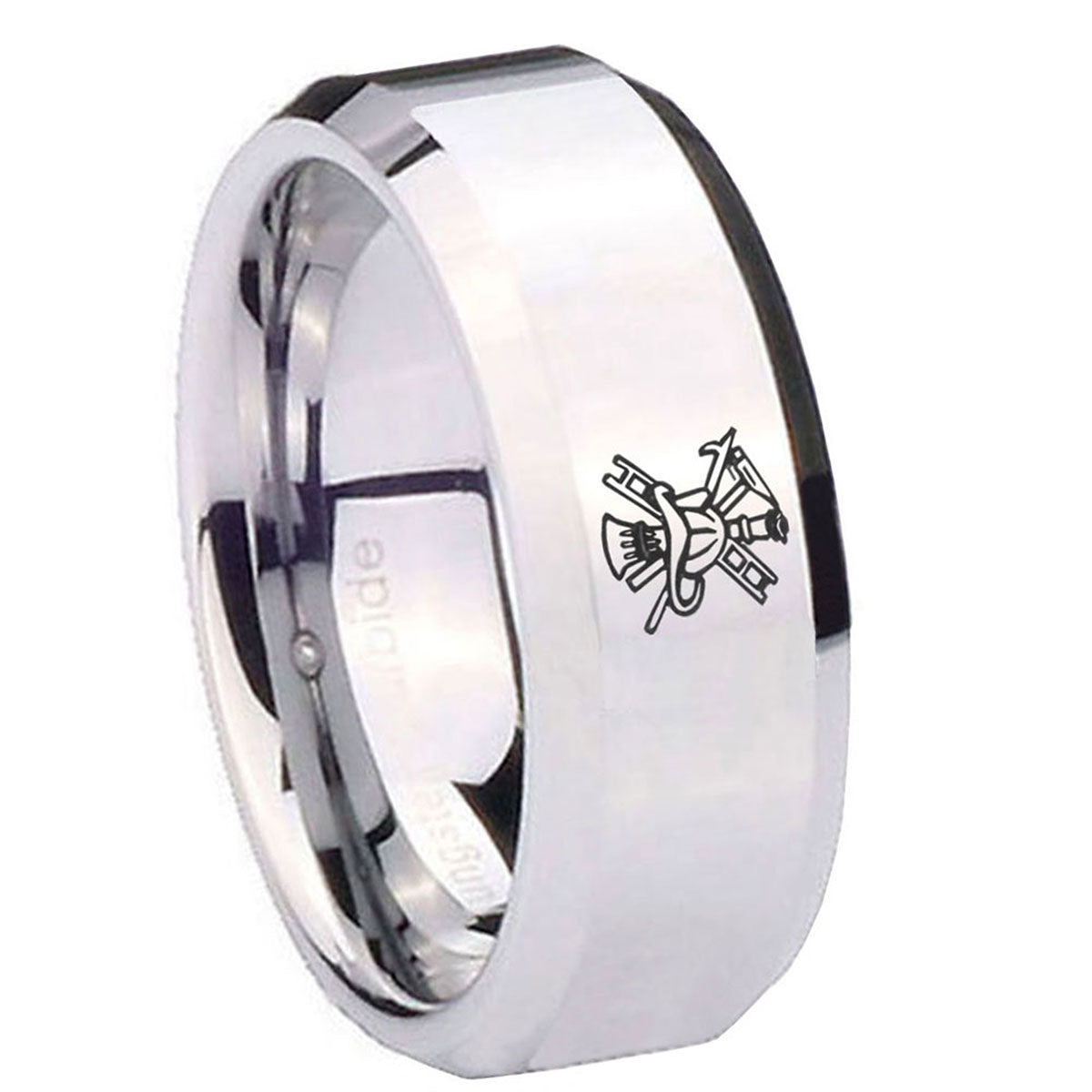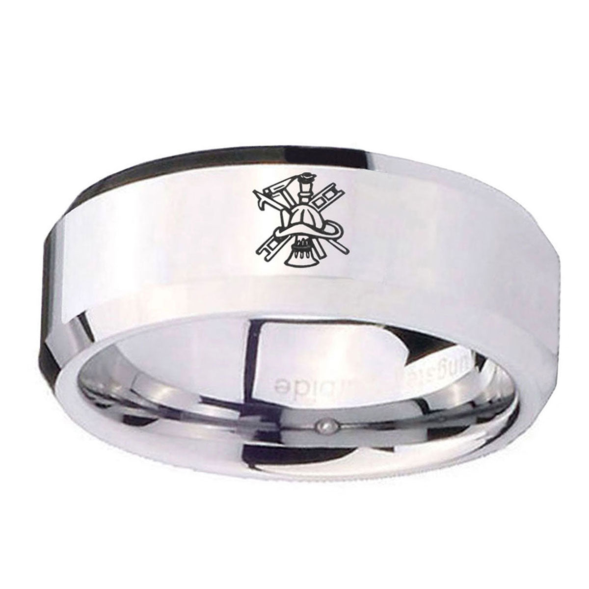 10mm Fireman Beveled Edges Silver Tungsten Carbide Mens Engagement Ring