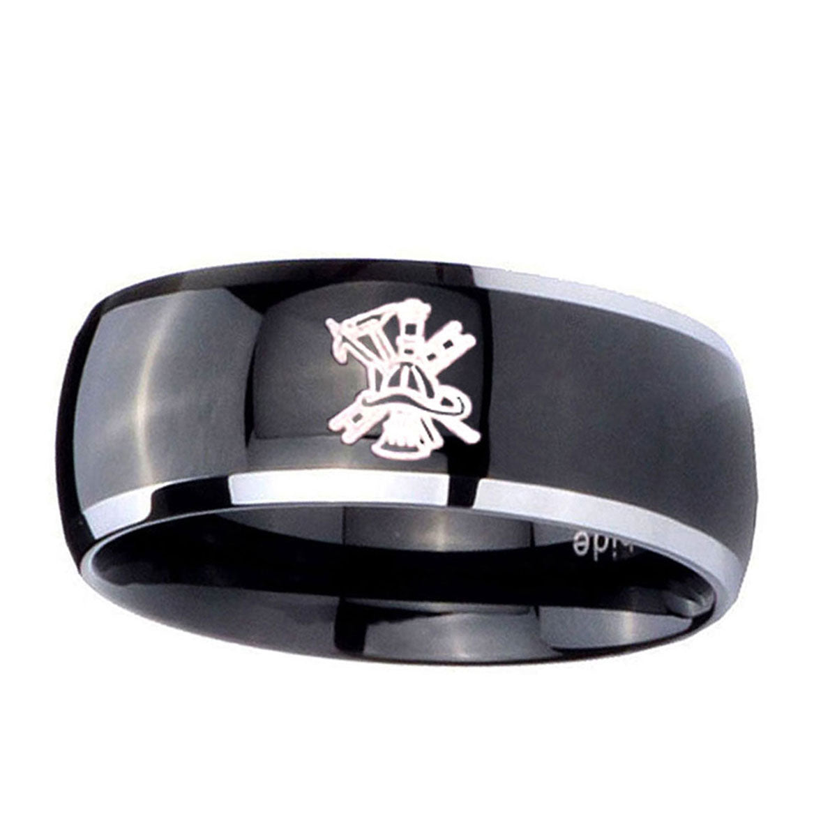 Style the 10mm Fireman Dome Glossy Black 2 Tone Tungsten Carbide Men's Bands Ring. This glossy black and 2-tone dome ring with Fireman design is perfect for men.