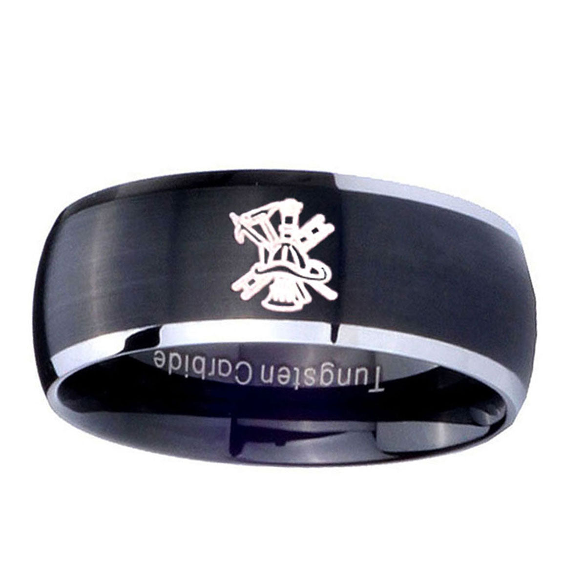 Introuding 5, 8mm Fireman Dome Brushed Black 2 Tone Tungsten Carbide Wedding Bands Ring . Offer in both 5mm and 8mm band width brushed black plated fnished from size 4 to 14