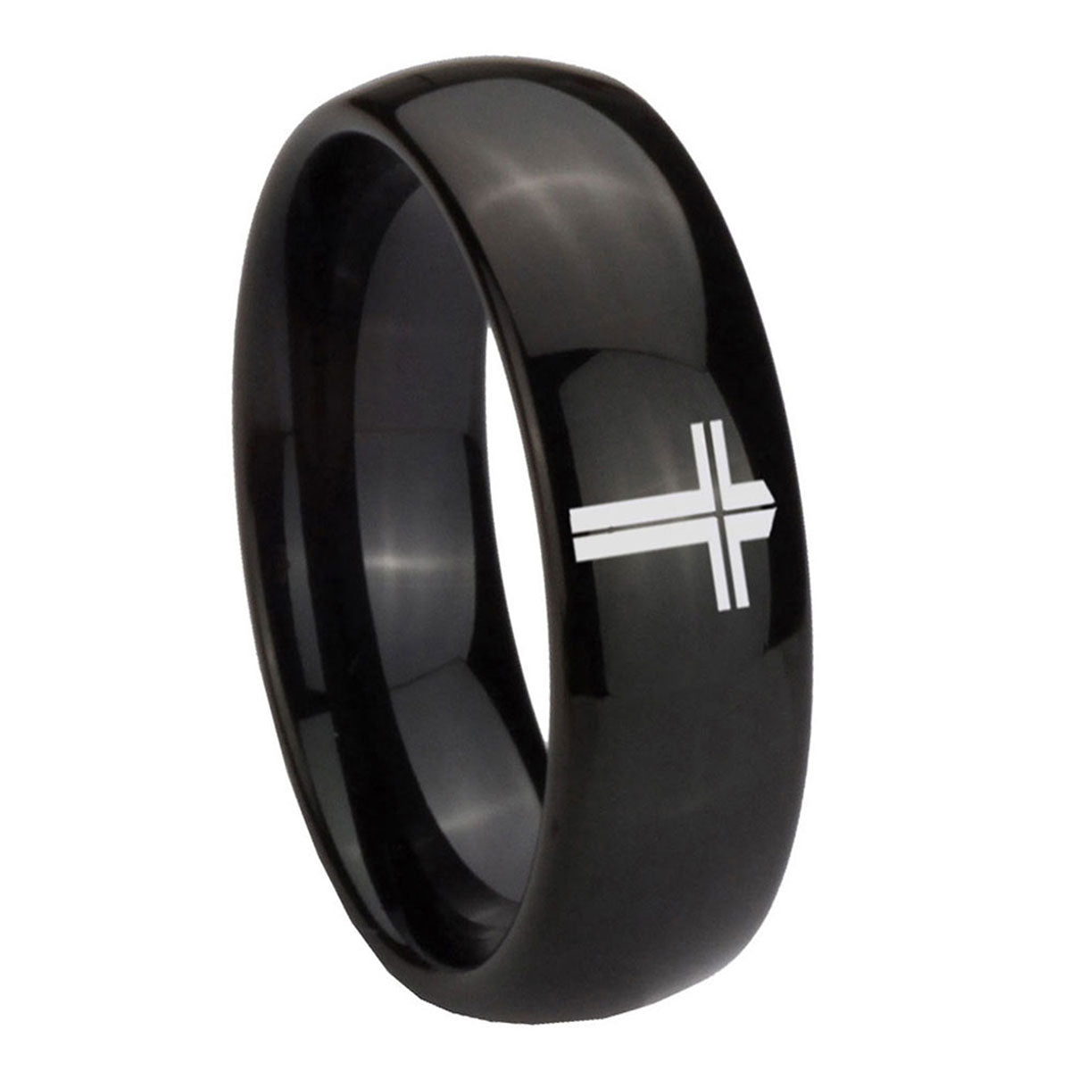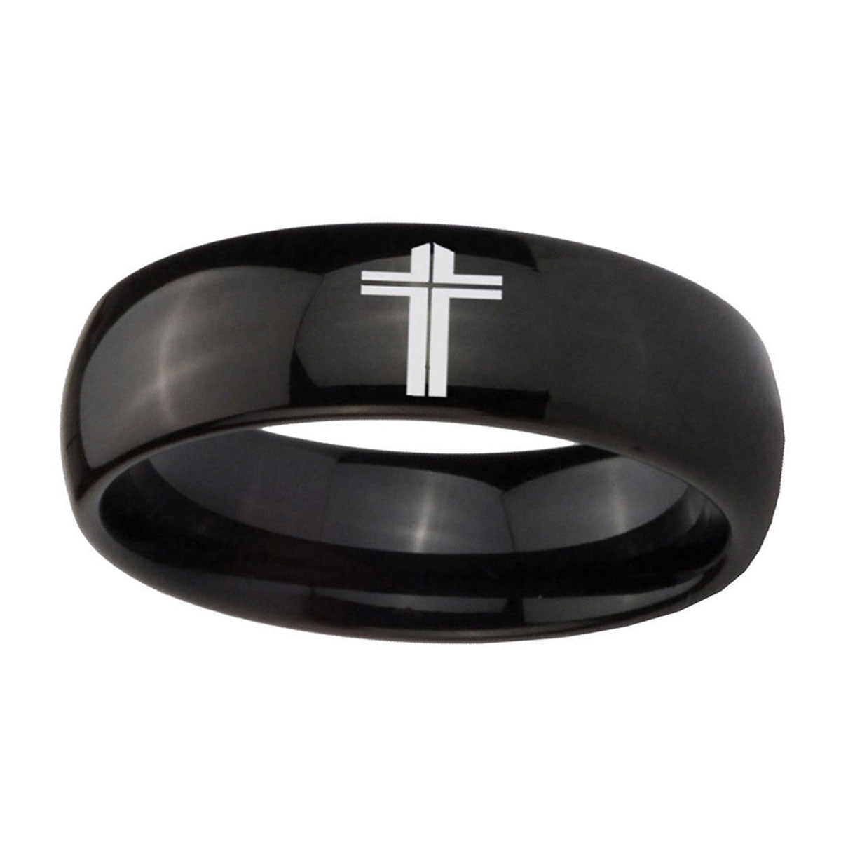 Style the 10mm Flat Christian Cross Dome Black Tungsten Carbide Bands Ring. This dome-shaped black tungsten ring with Flat Christian Cross design is perfect for men.
