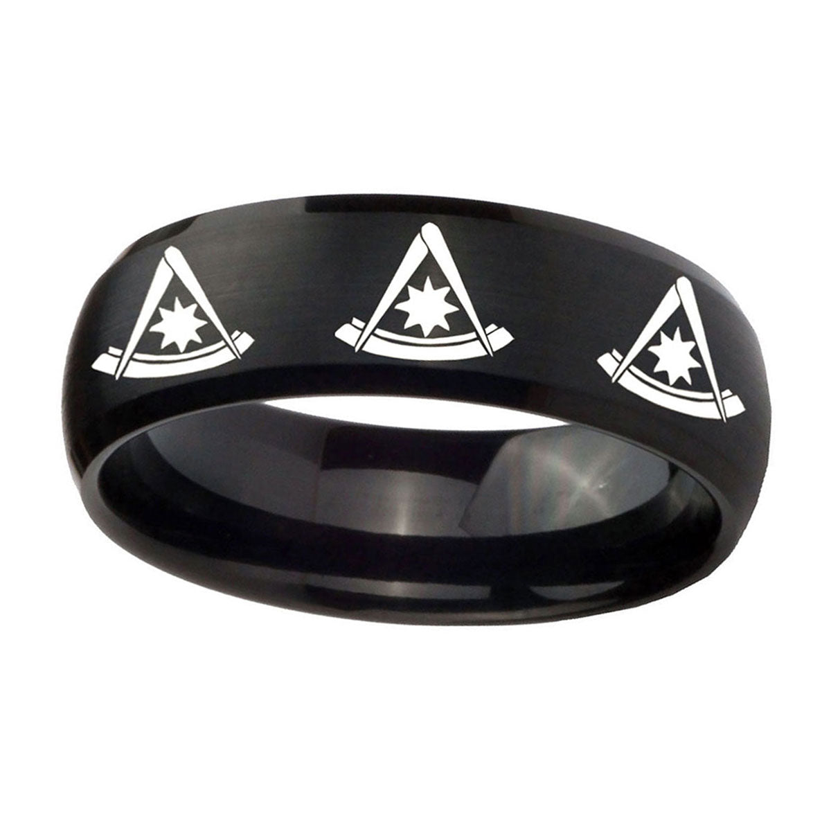 5, 8mm Multiple Pester Master Masonic Dome Brush Black Tungsten Carbide Bands Ring