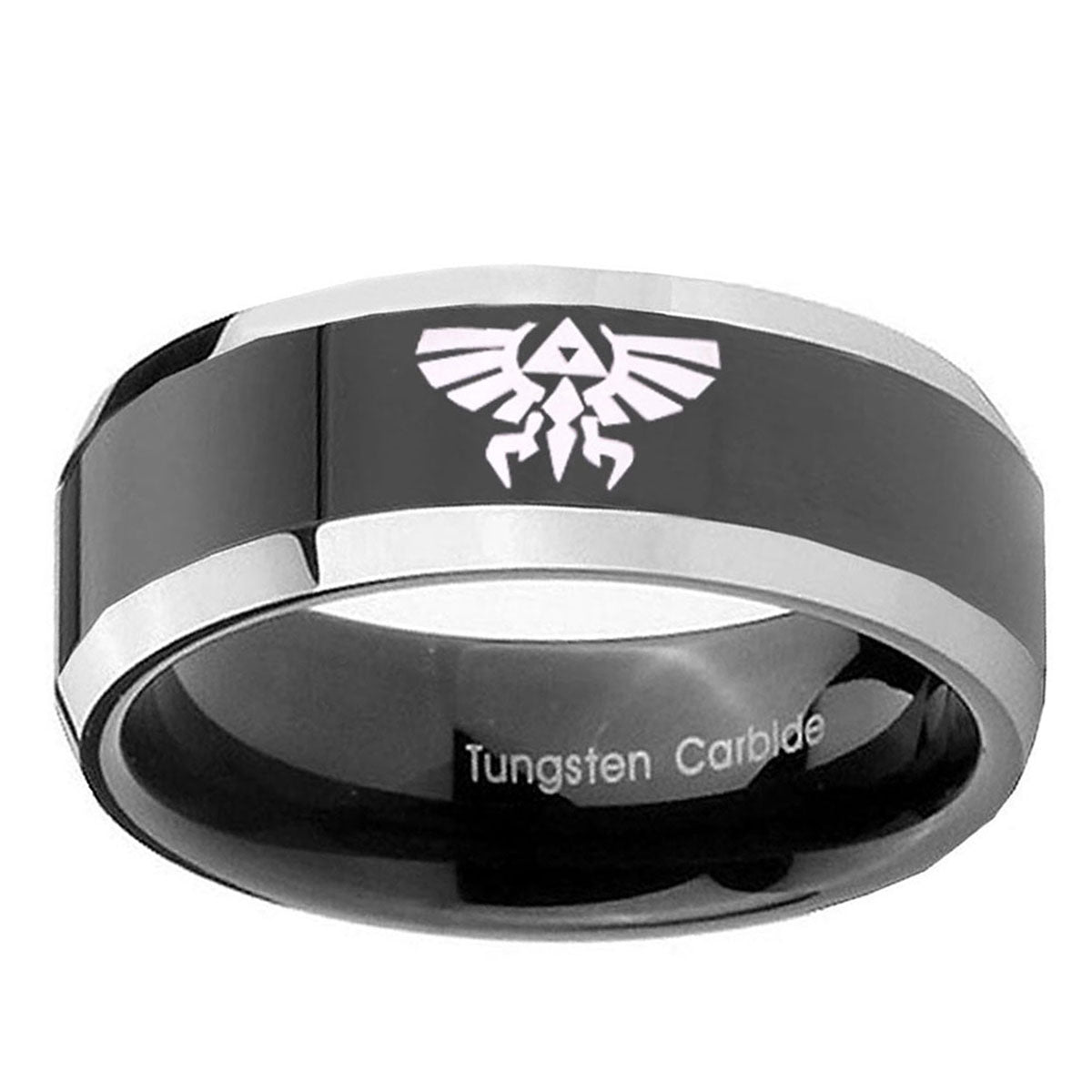 10mm Zelda Skyward Sword Beveled Glossy Black 2 Tone Tungsten Personalized Ring