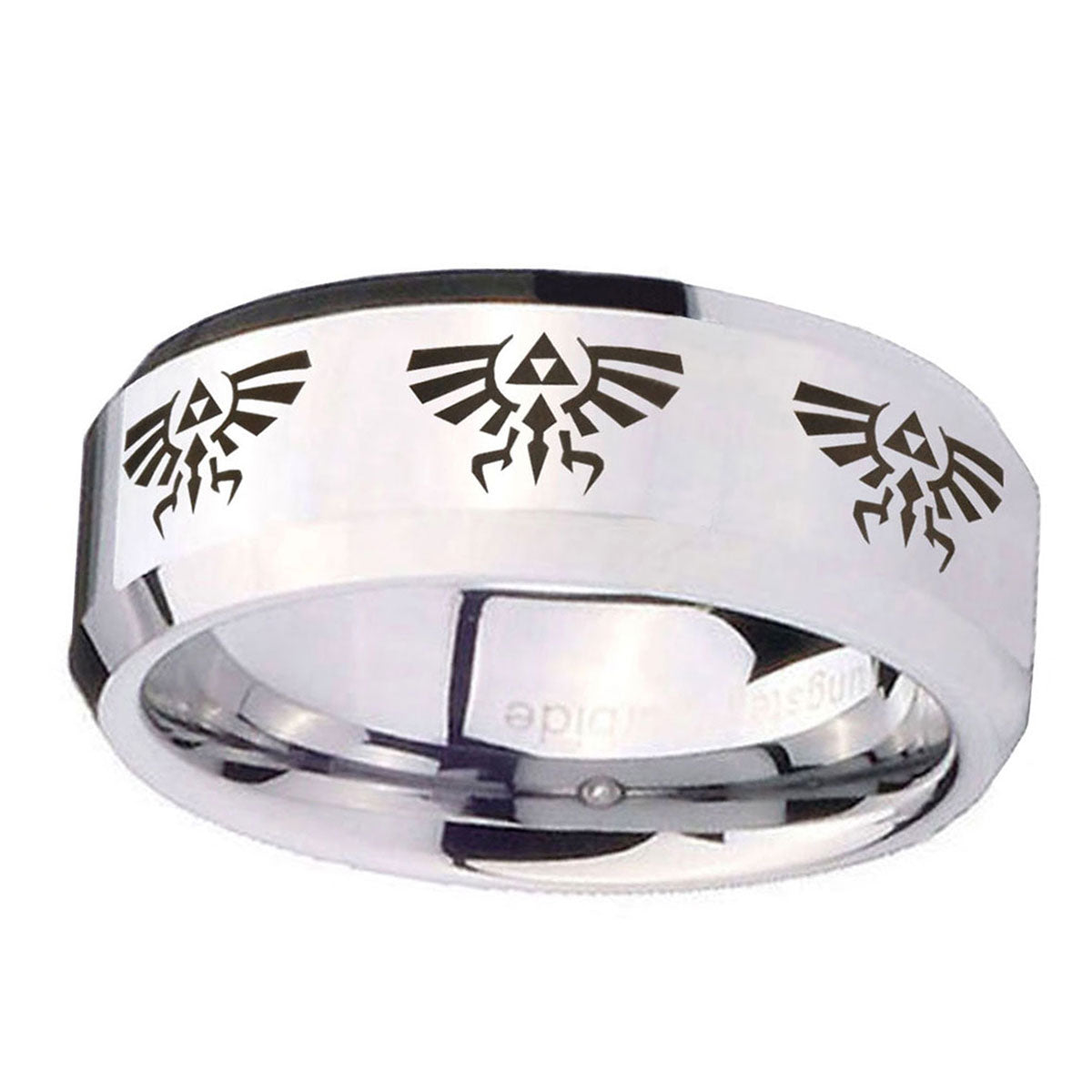 10mm Multiple Zelda Skyward Sword Beveled Silver Tungsten Wedding Engraving Ring