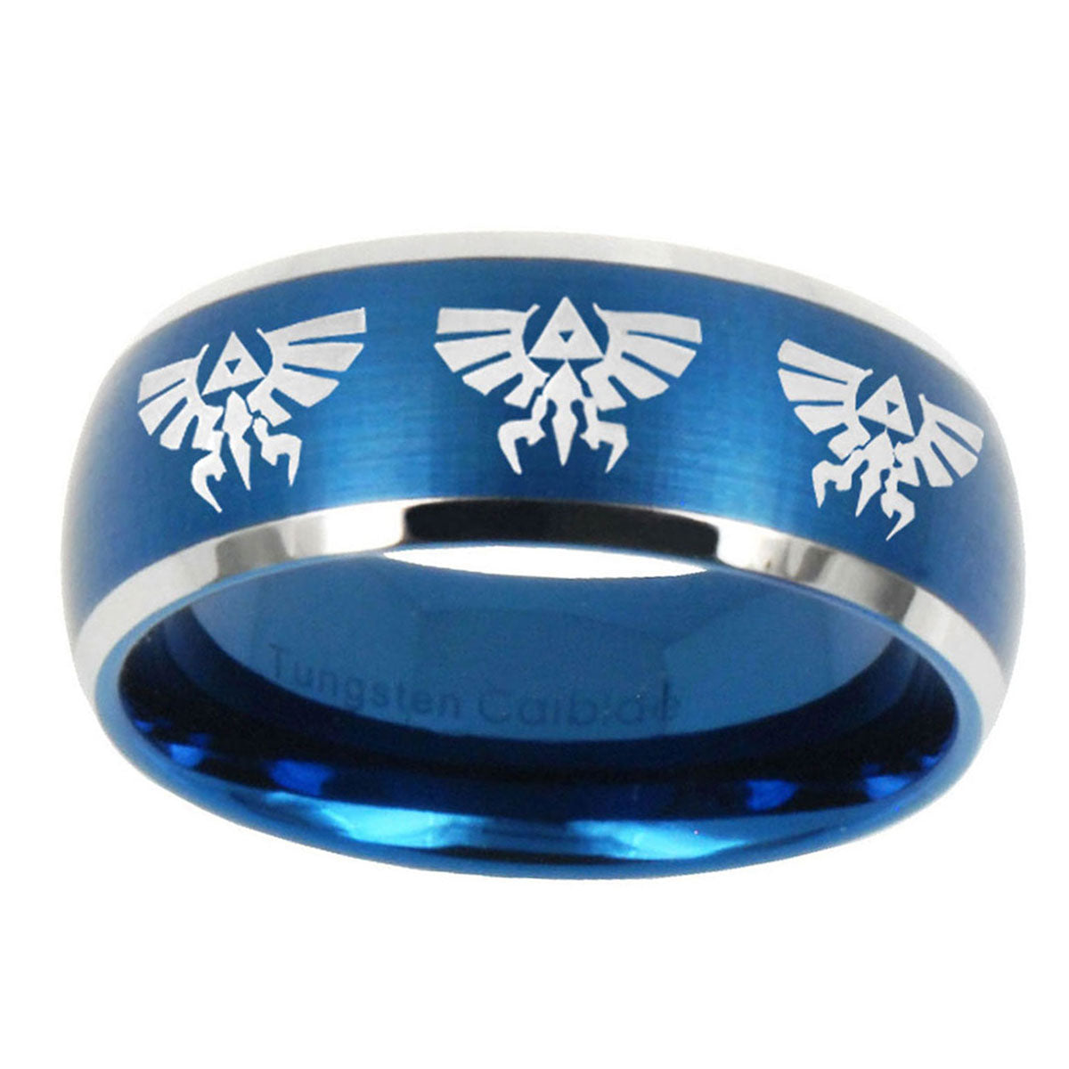 10mm Multiple Zelda Skyward Sword Dome Brushed Blue 2 Tone Tungsten Men's Ring