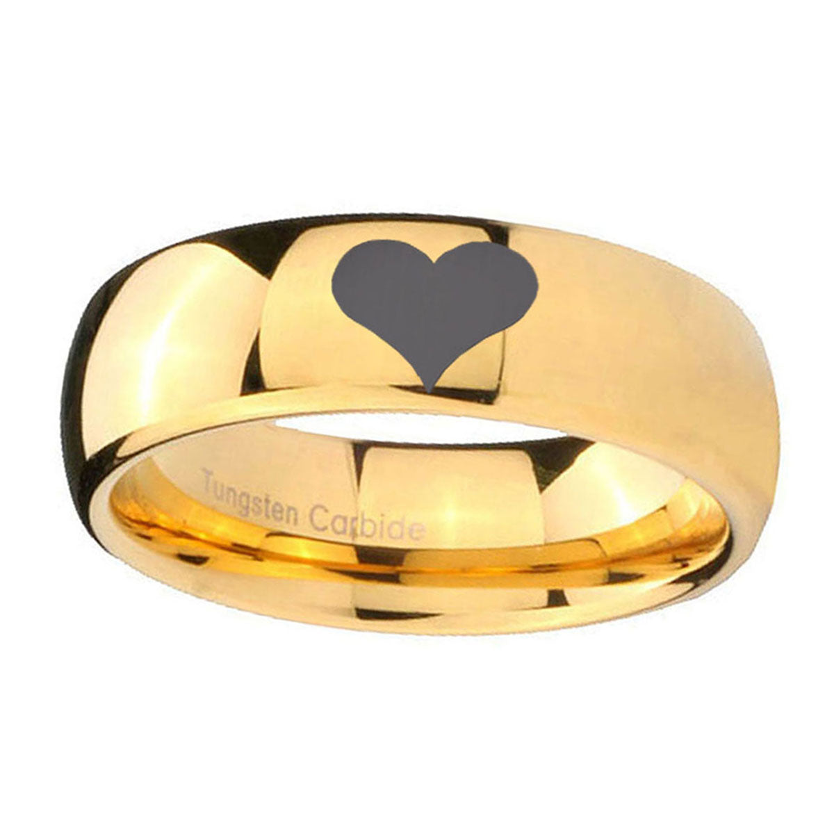 Celebrate with the 10mm Heart Dome Gold Tungsten Carbide Mens Wedding Ring. This gold-finished tungsten ring with Heart design is a luxurious choice for weddings.