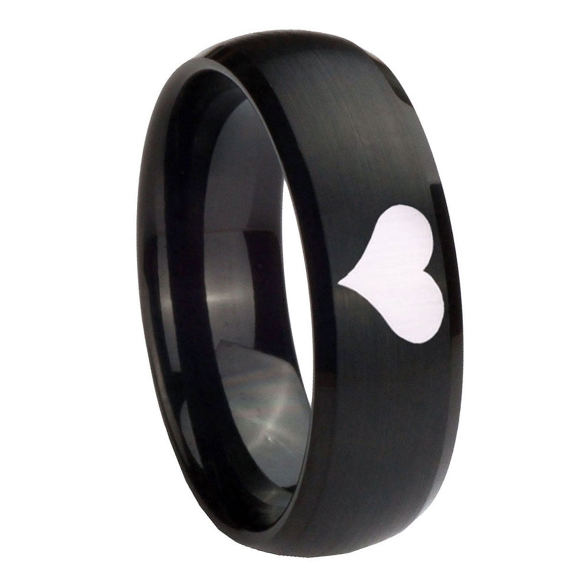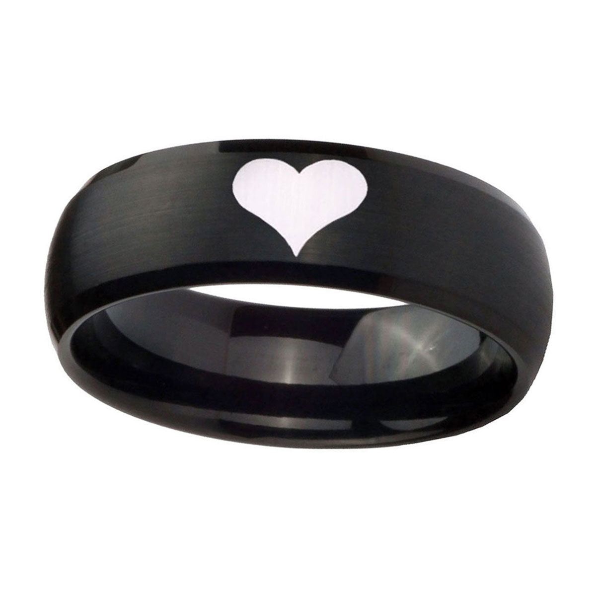 Propose with the 10mm Heart Dome Brush Black Tungsten Carbide Men's Engagement Ring. This brushed black dome ring with Heart design is ideal for engagements.