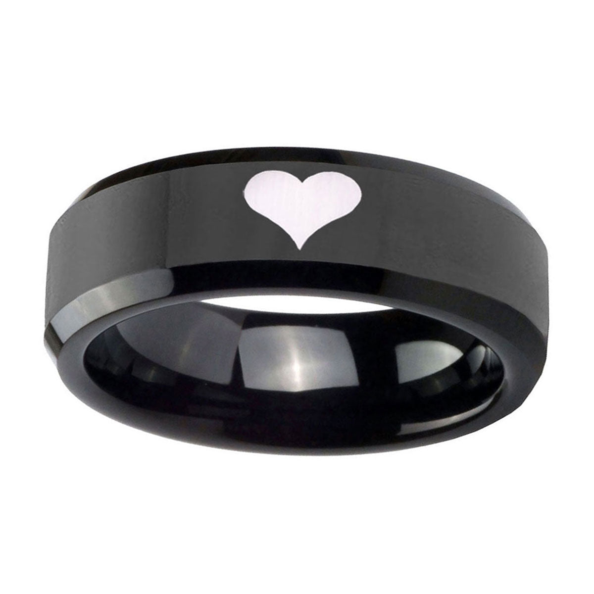 Celebrate with the 10mm Heart Beveled Edges Black Tungsten Carbide Men's Wedding Ring. This black tungsten ring with Heart design is perfect for weddings.