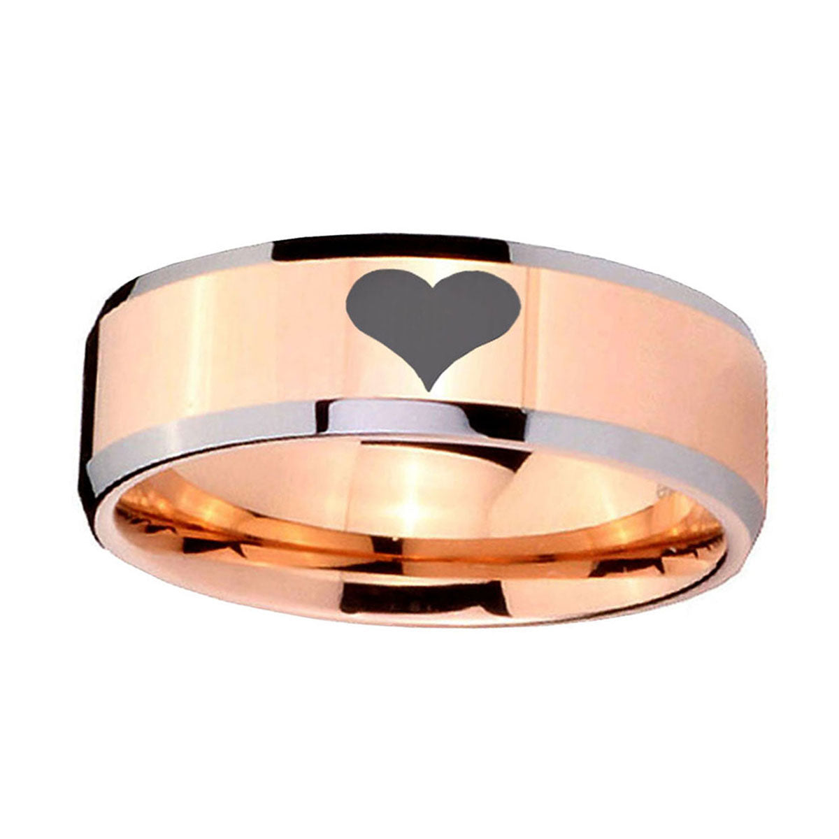 Celebrate with the 10mm Heart Beveled Edges Rose Gold Tungsten Carbide Wedding Band Mens. This rose gold tungsten ring with Heart design is perfect for weddings.