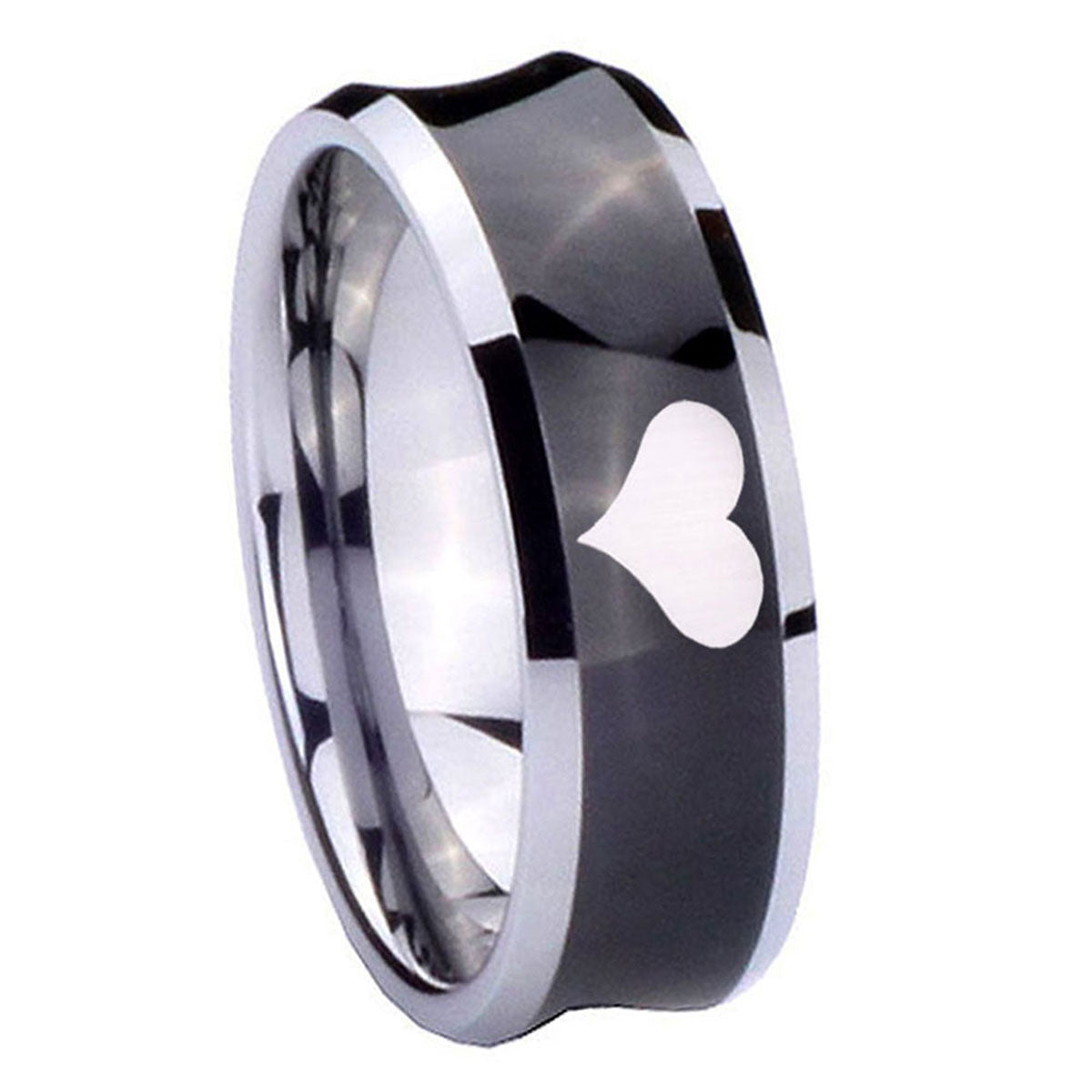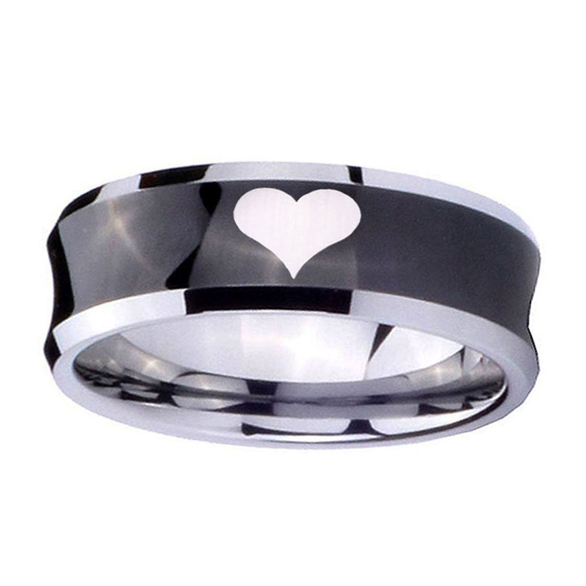 Personalize the 10mm Heart Concave Black Tungsten Carbide Wedding Engraving Ring. This concave black tungsten ring with Heart design is perfect for custom engravings.