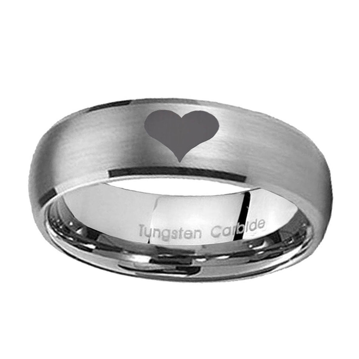 10mm Heart Dome Brushed Tungsten Carbide Personalized Ring