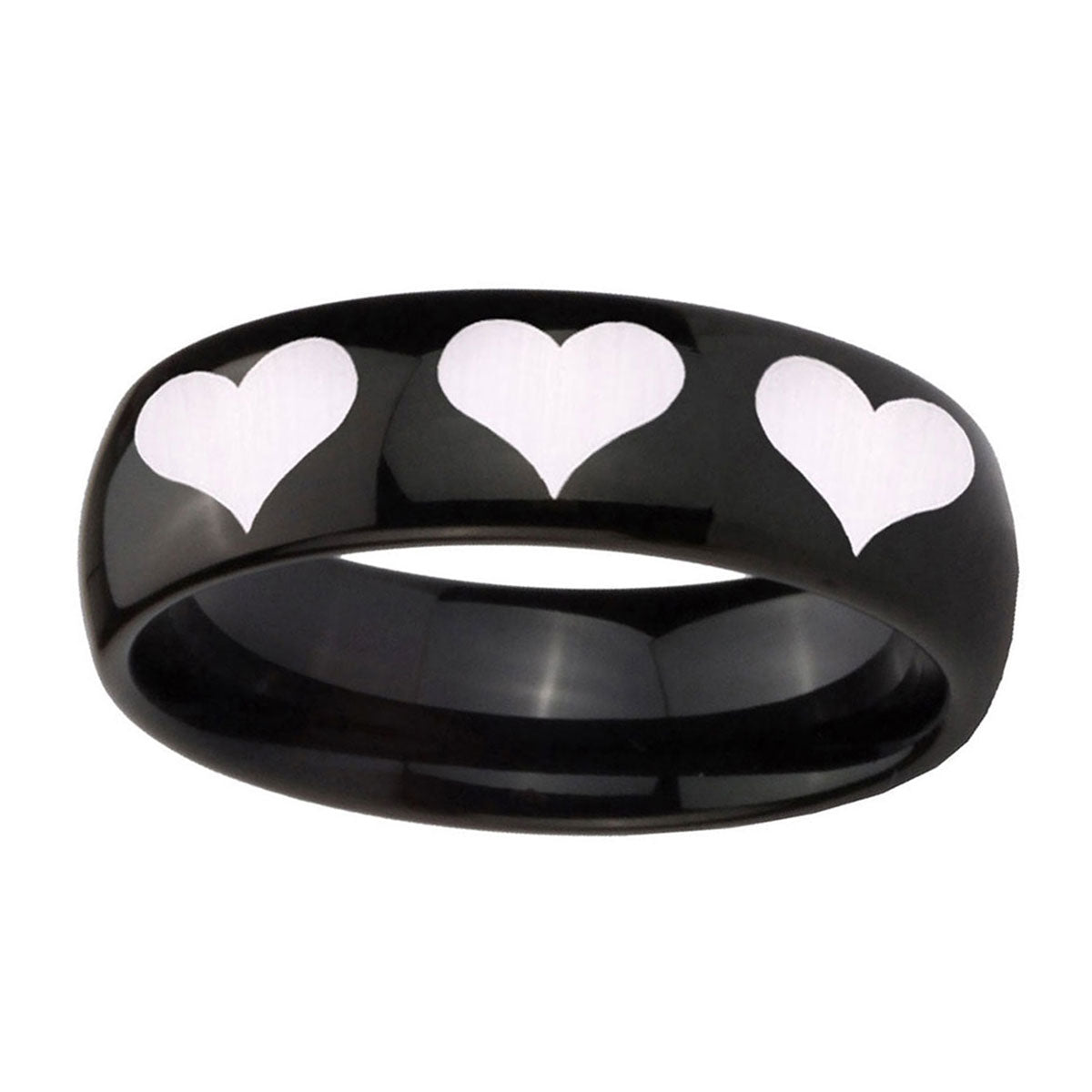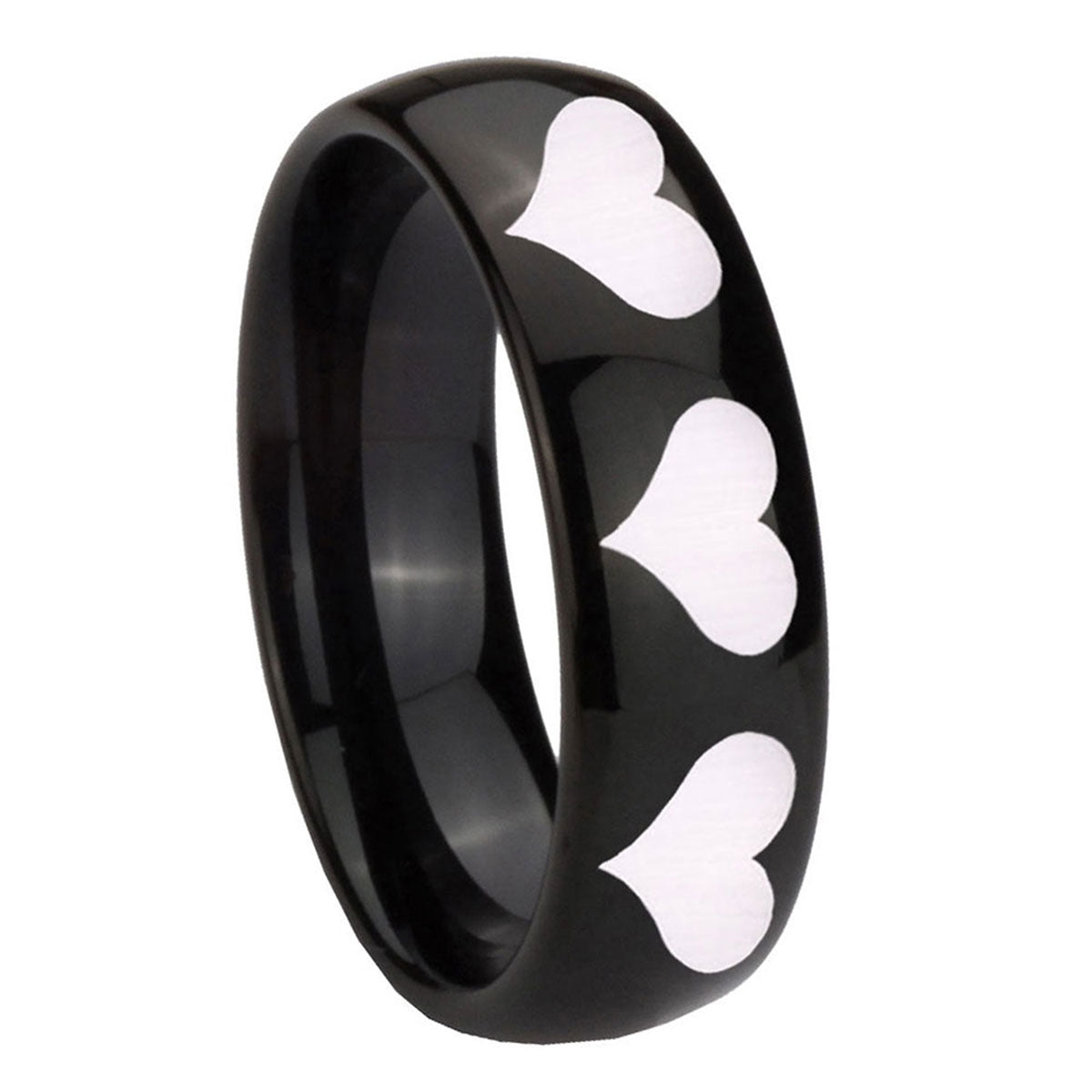 10mm Multiple Heart Dome Black Tungsten Carbide Custom Mens Ring