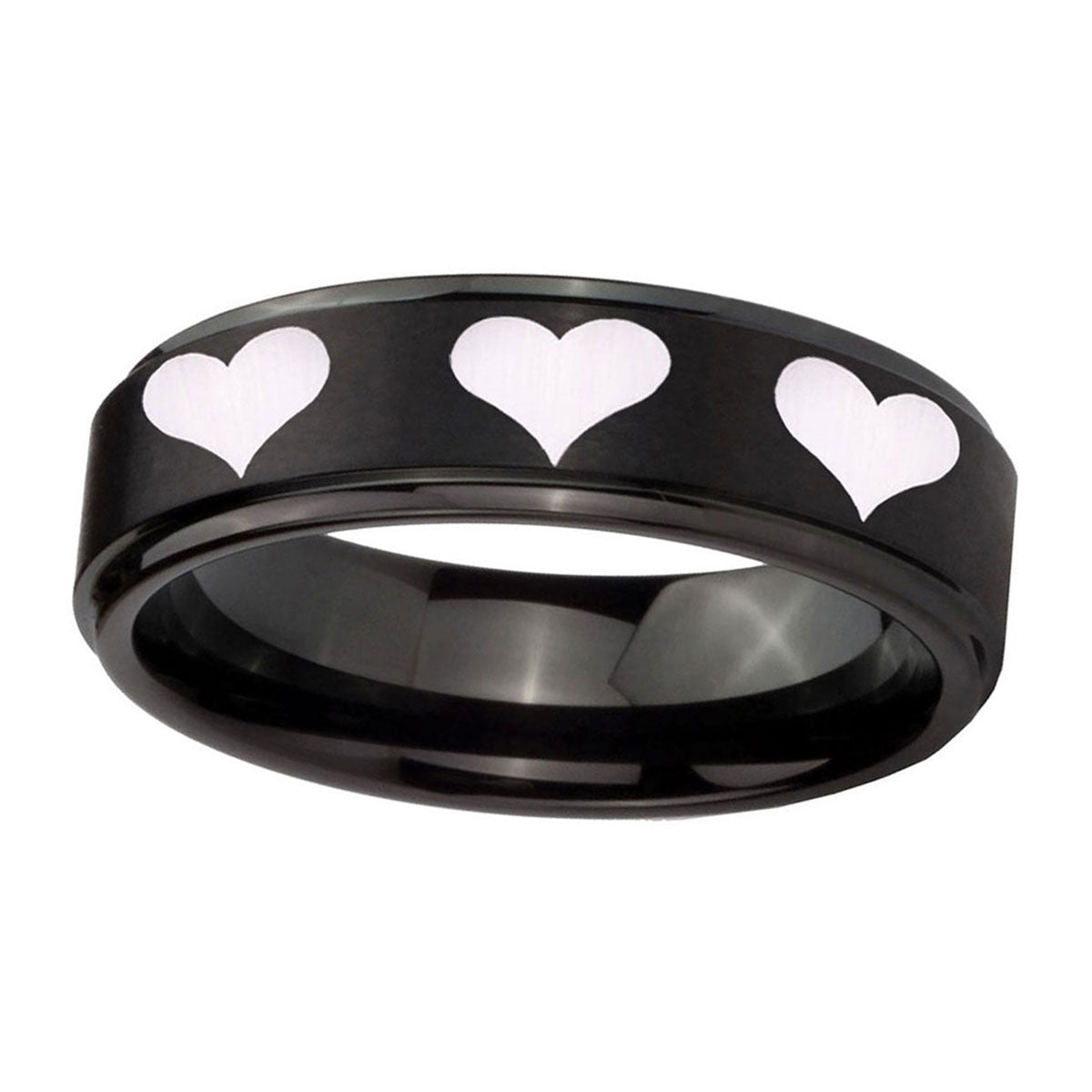 10mm Multiple Heart Step Edges Brush Black Tungsten Carbide Mens Promise Ring