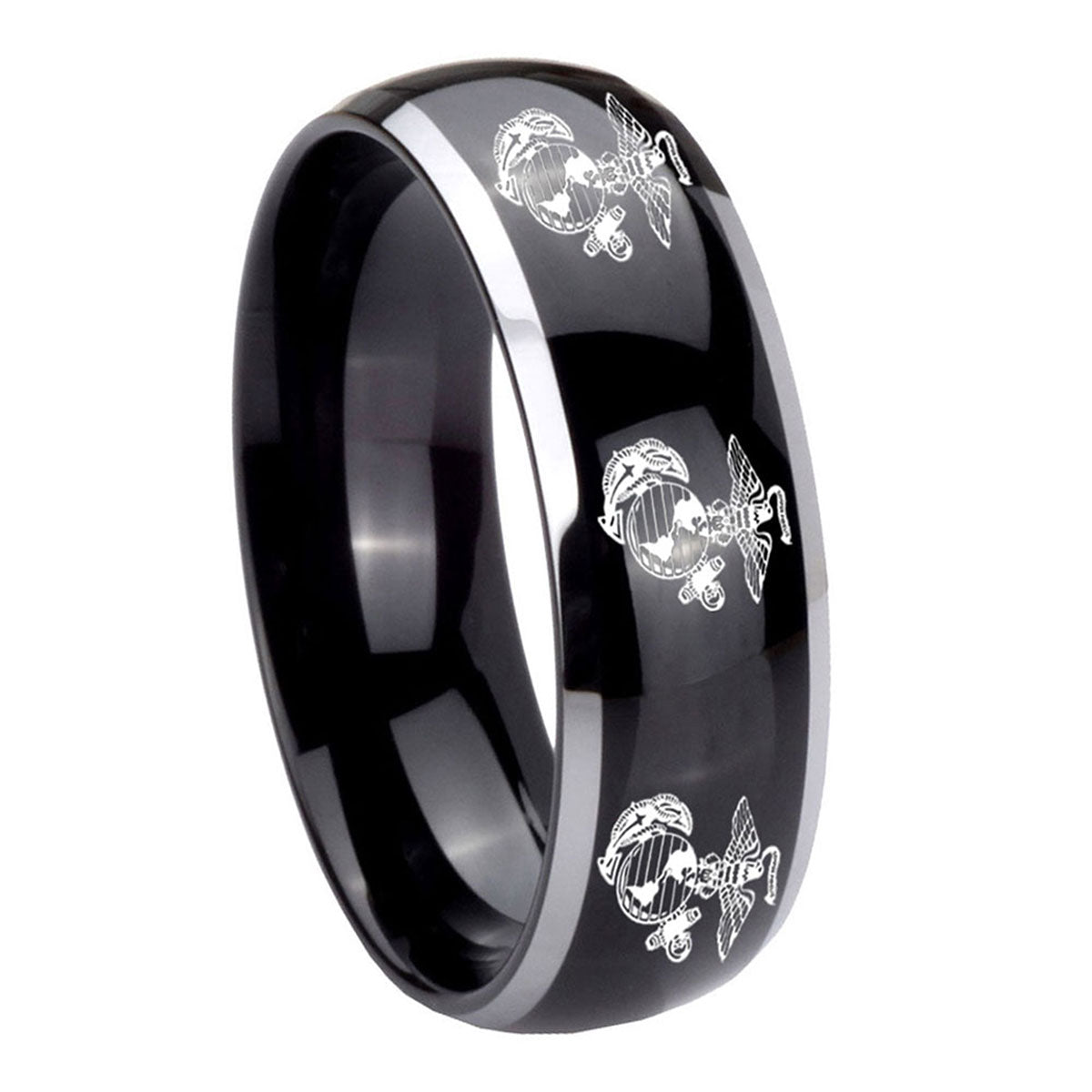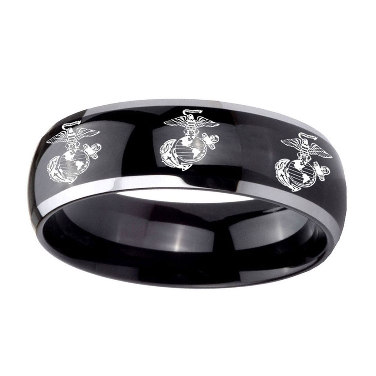 Introuding 5, 8mm Multiple Marine Dome Glossy Black 2 Tone Tungsten Carbide Engraved Ring . Offer in both 5mm and 8mm band width polished black plated two tone finished from size 4 to 14
