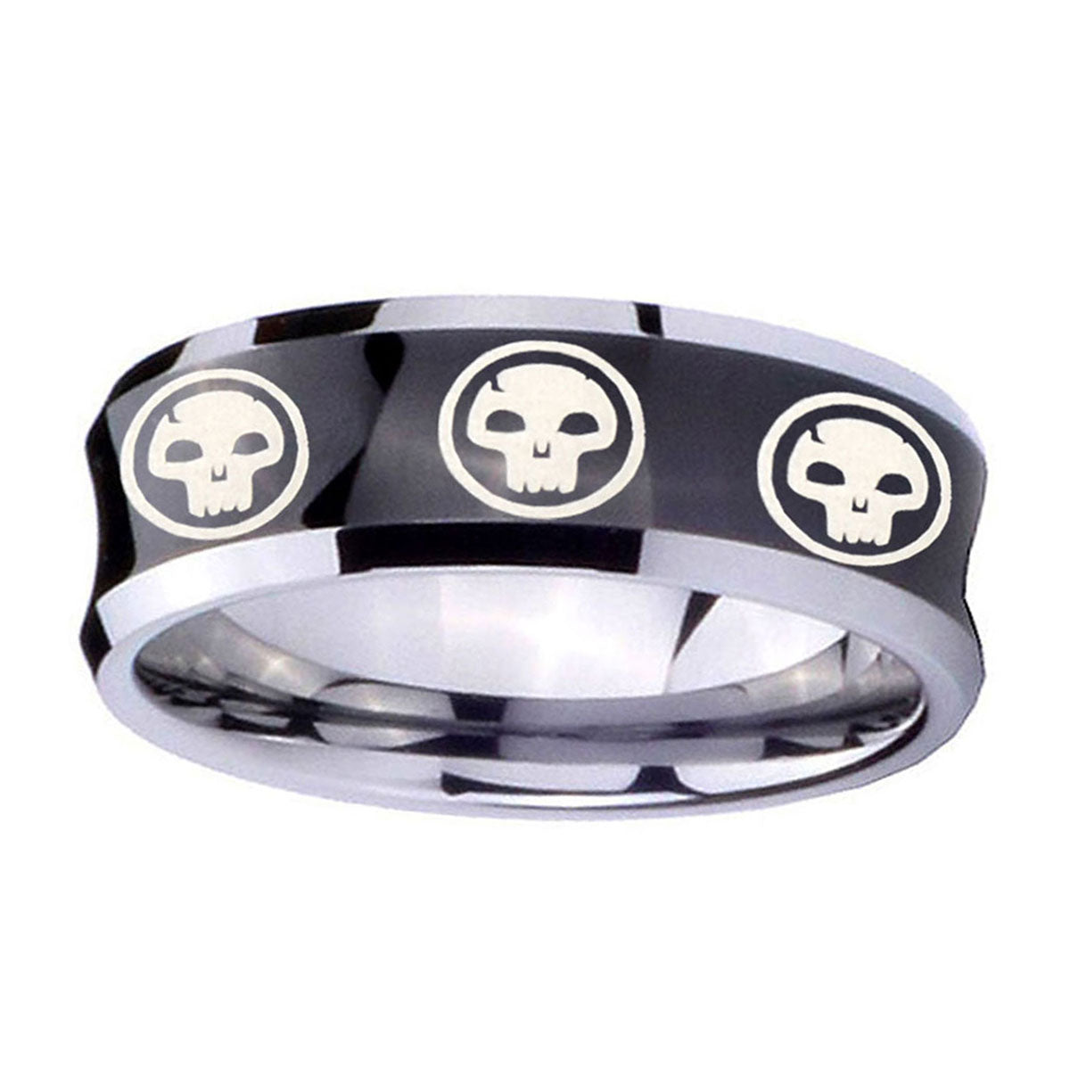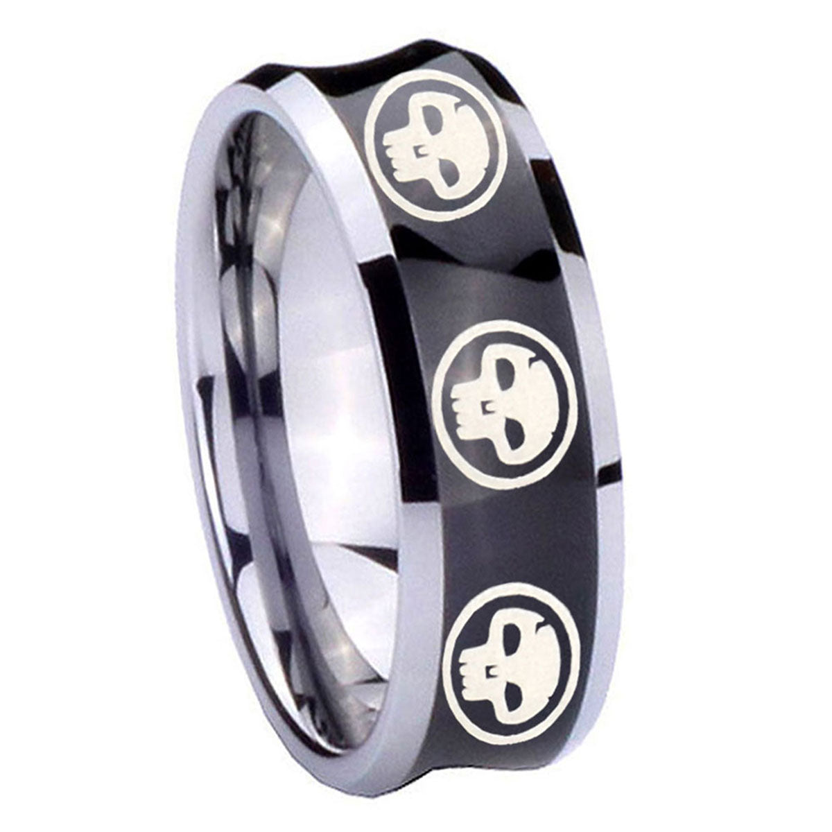 Propose with the 10mm Multiple Skull Concave Black Tungsten Carbide Men's Engagement Band. This concave black tungsten ring with Multiple Skull design is ideal for engagements.
