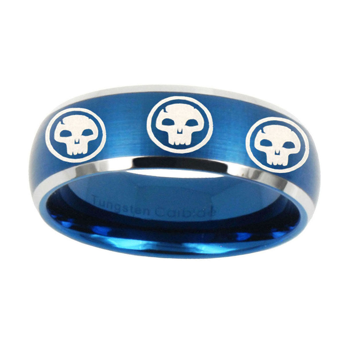 5, 8mm Multiple Skull Dome Brushed Blue 2 Tone Tungsten Carbide Mens Promise Ring
