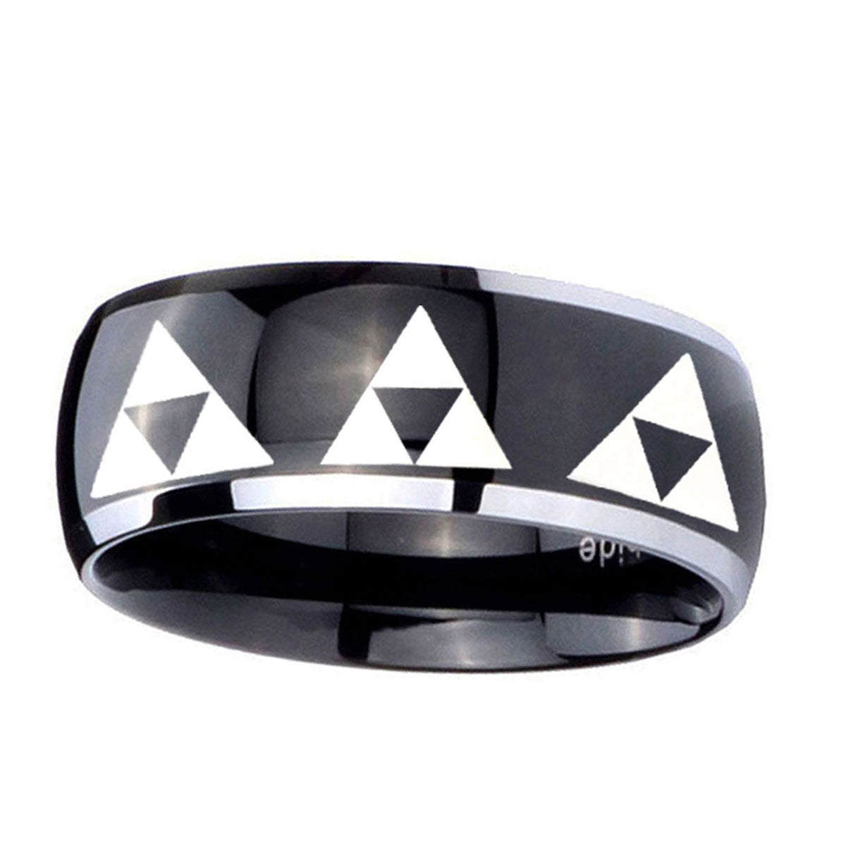 10mm Multiple Zelda Triforce Dome Glossy Black 2 Tone Tungsten Mens Bands Ring